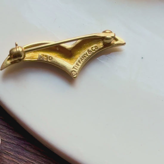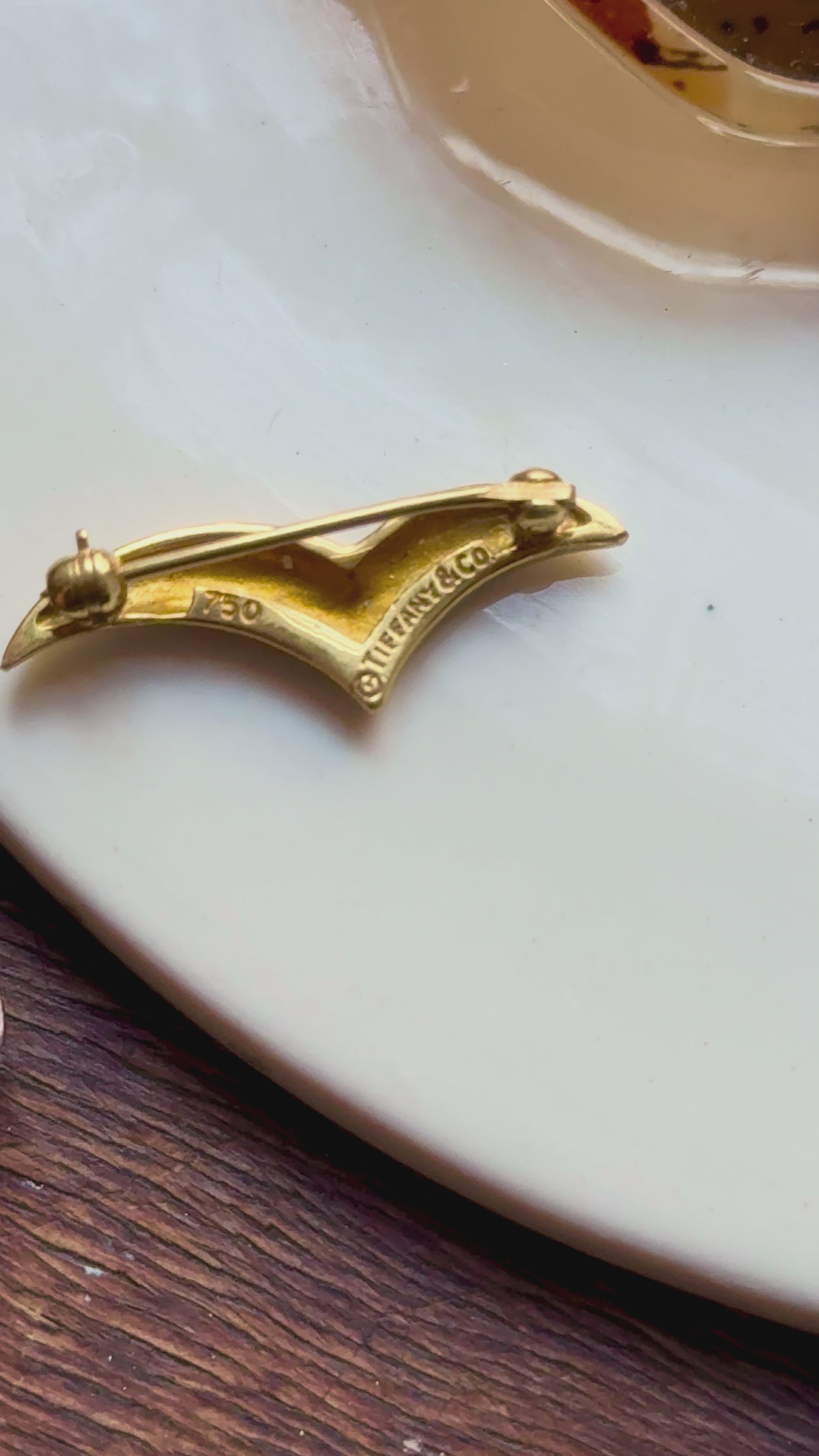 🤫 A little birdie told me she’s T*ff*ny 🩵🕊️🪺 This vintage bird brooch is ready to perch on your collar, cardigan, bag, etc… or you could easily convert to a pendant/necklace. Signed on the back, 30mm, 3.3 grams, 18k