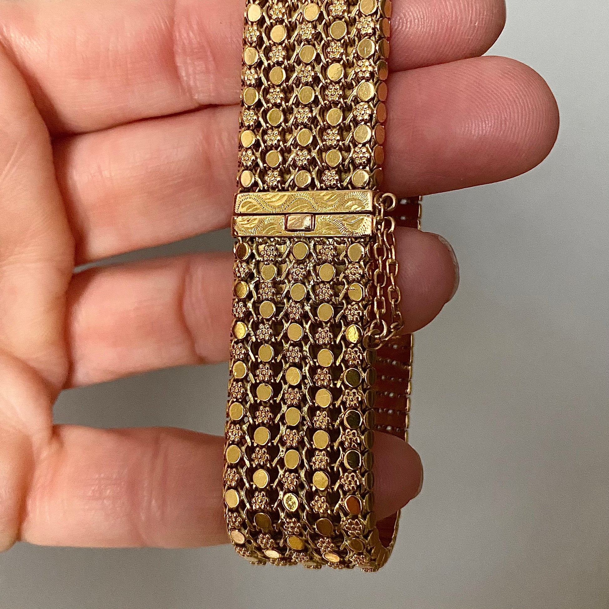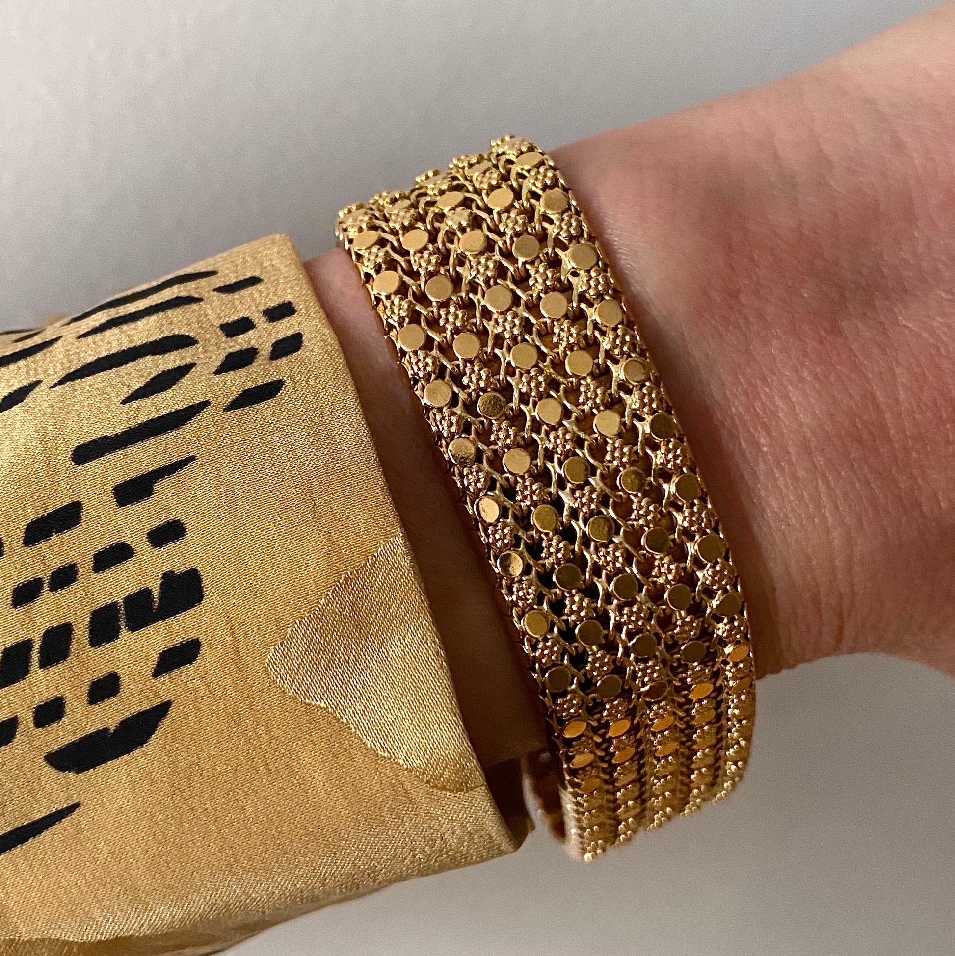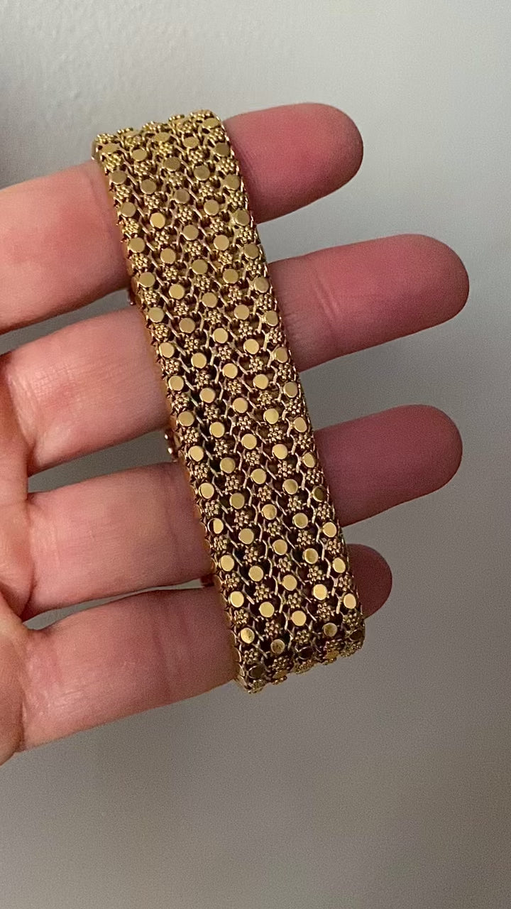 The glow of Portuguese 19k gold! And the feel of this bracelet's weighty slinkiness! Showing the back because...that clasp! I love when jewelry clasps become part of the design.