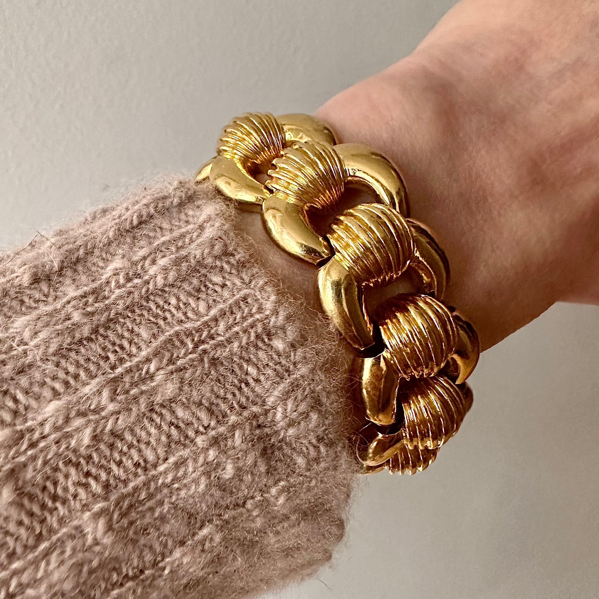 DESCRIPTION FROM ELISA: It's a chunker...a super elegant one by Charles Turi. His eponymous jewelry firm was founded in 1947 and was wildly successful due to his unusual designs and flawless execution. This bracelet is a classic example of his work, is highly collectible and yup, it was in the junk pile.