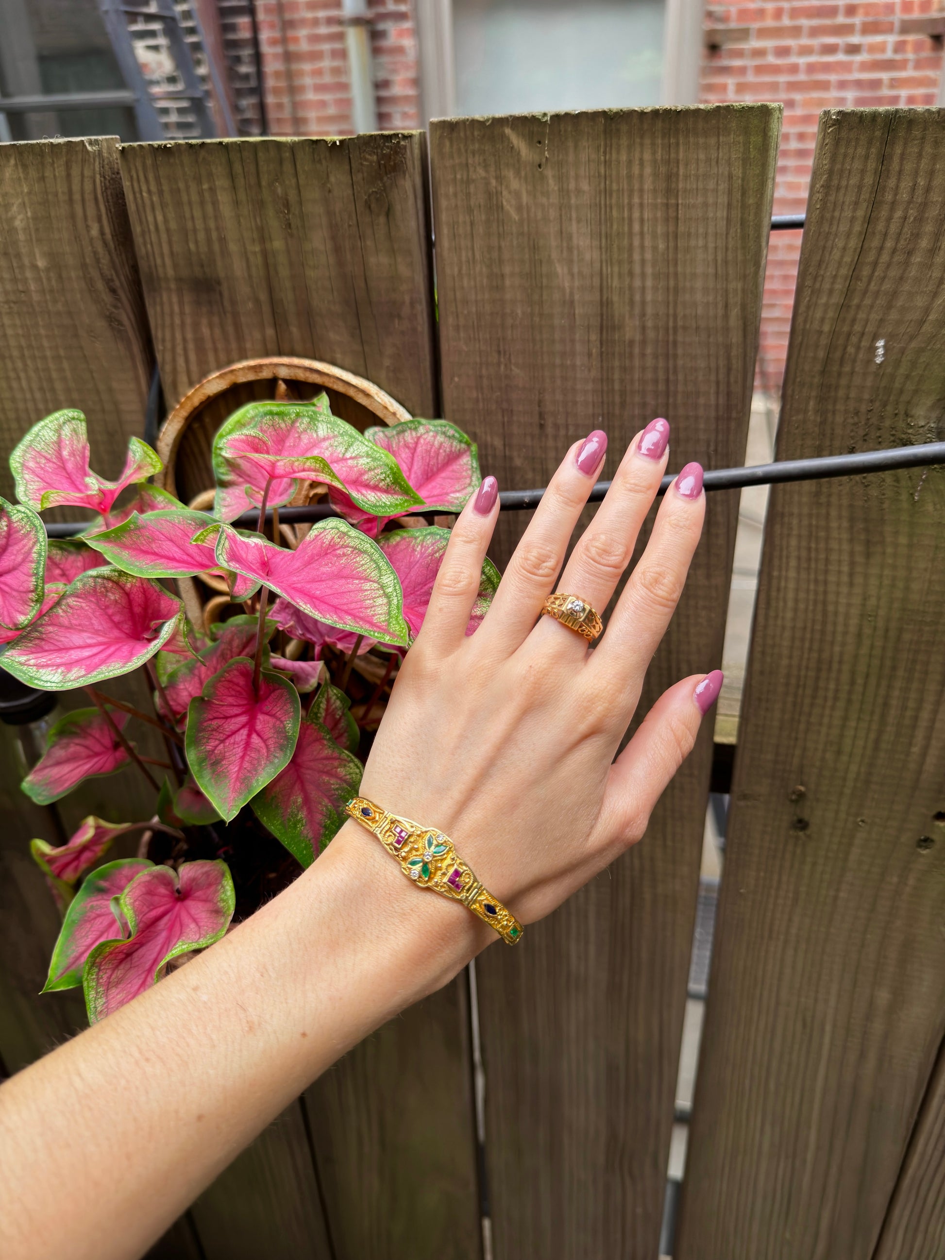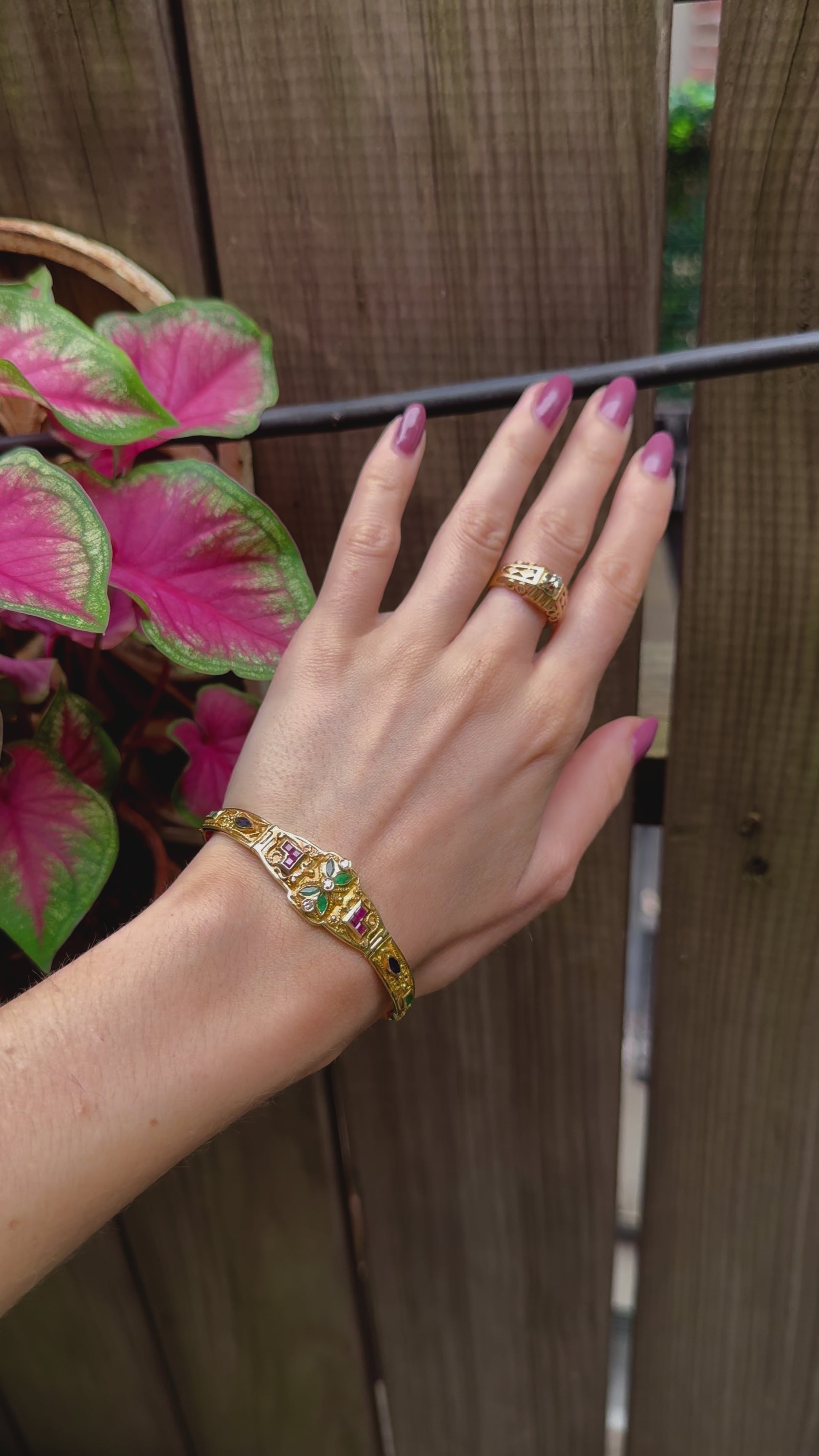 Moroccan vibes. Invisible clasp and safety latch. Genuine diamonds, sapphires, emeralds, rubies.