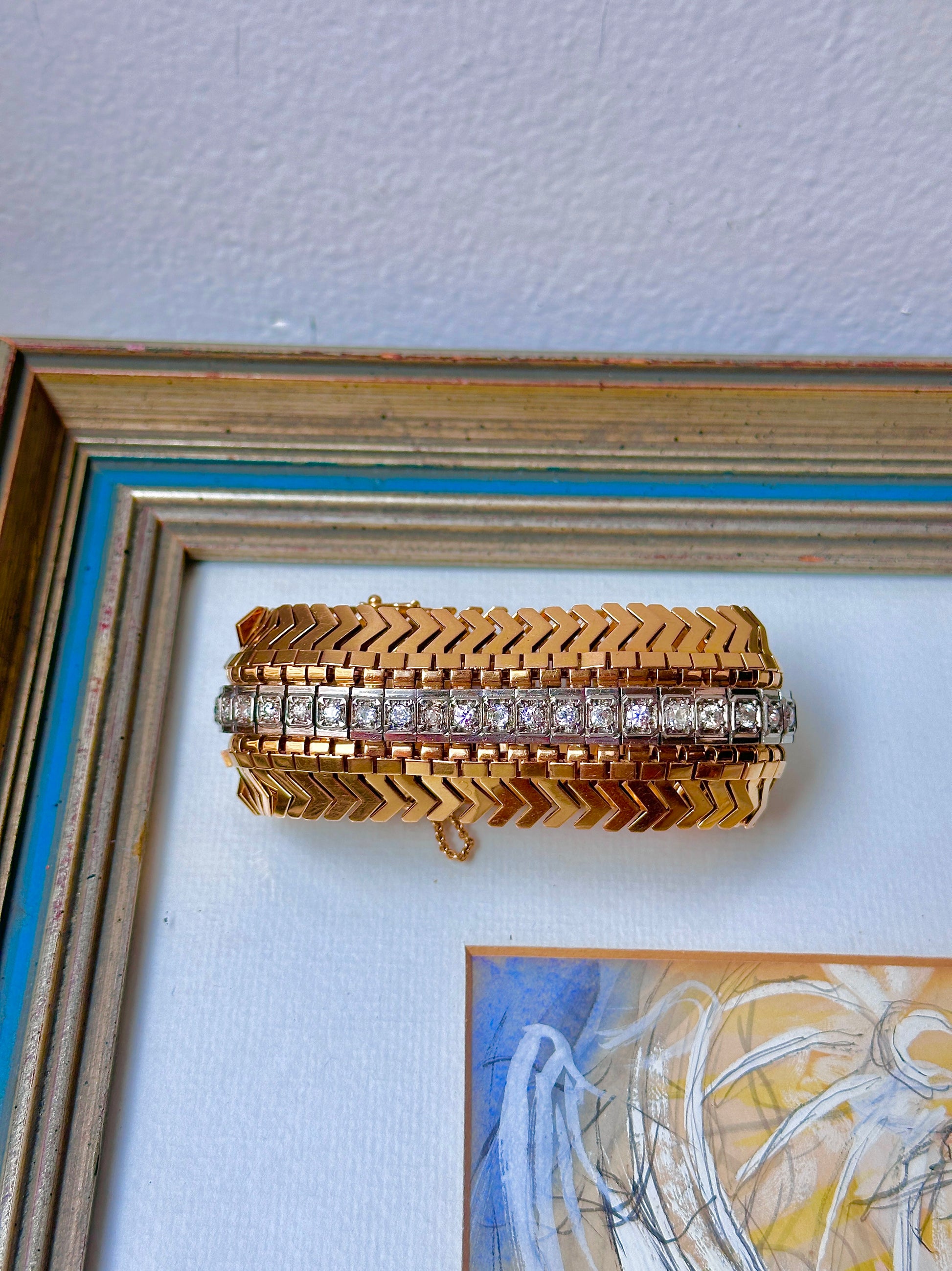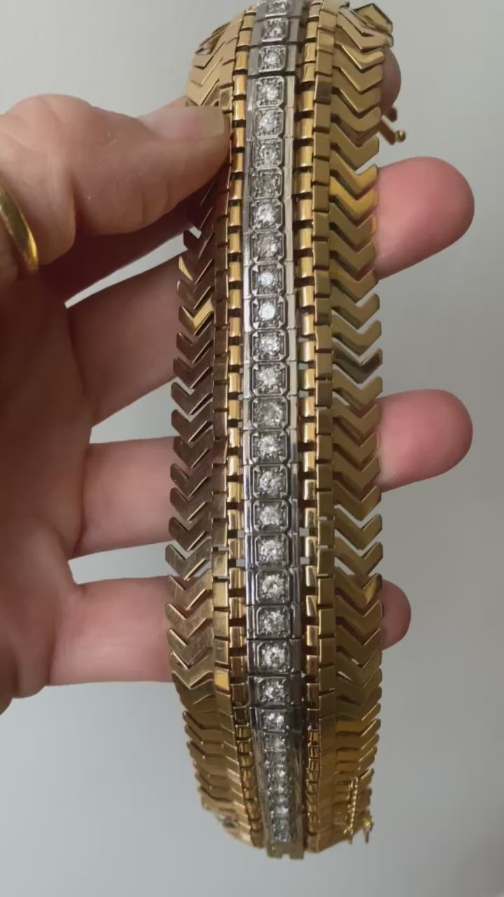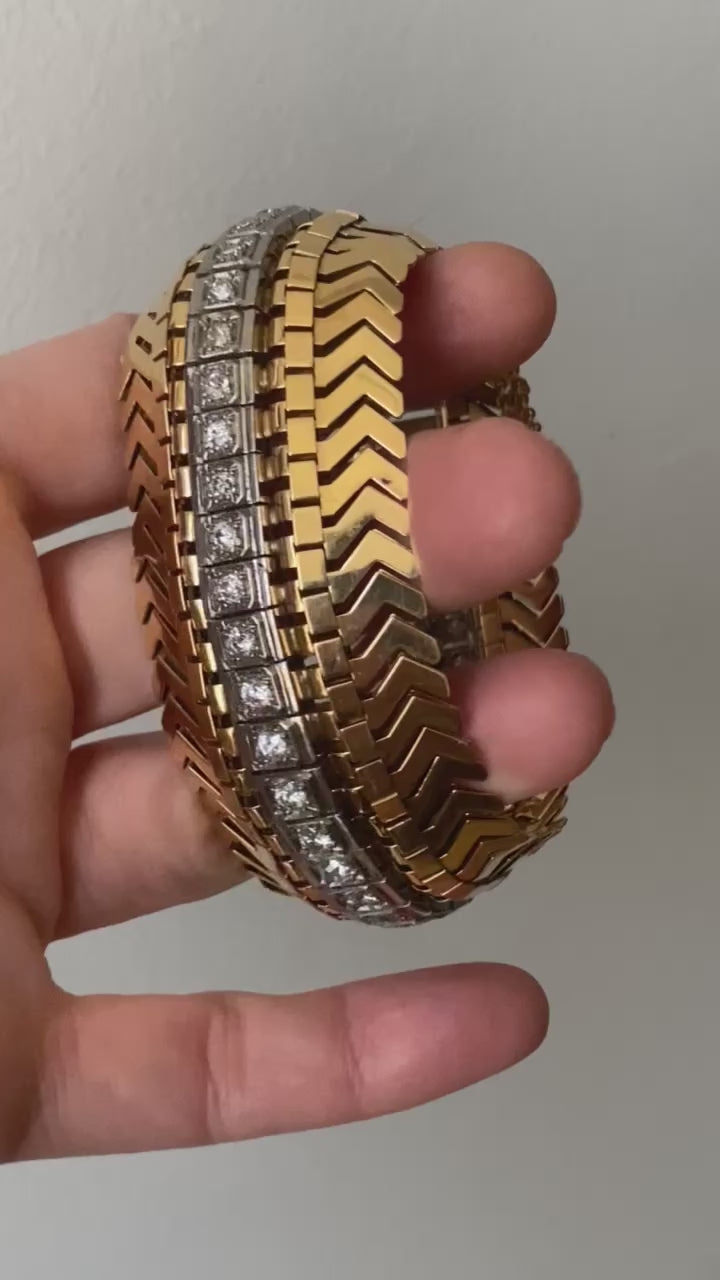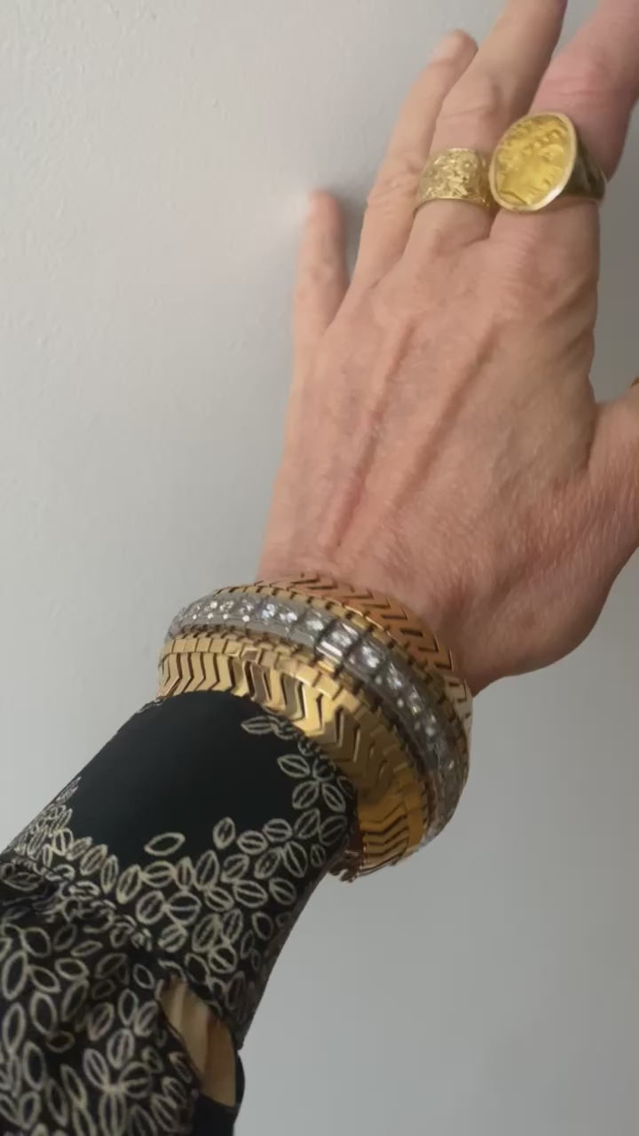 🤫 You guys are honestly the best detectives— always spotting pieces in the corners of photos or catching little mistakes! Yesterday’s reel of 7 bracelets said they were all on chelseagirlnyc.com but of course many of you figured out the far right piece in fact is not on our site. So I’m dropping this Frenchie right now! It’s quite a site to see— this Parisian bracelet (or cuff?) weighs a whopping 93.6 grams (join the hectogram club!), and a lot of that is actually made of 39 sparkling diamonds— BIG ones! They’re old-mine cut and some modern brilliant cut, EACH about .15c (totalling to 6 TCW - total carat weight) !!! This piece is scaley, meshy, and of course originally from France, full of French hallmarks including DÉPOSÉ, commonly found on items made in France in the late 19th century…. a once-in-a-lifetime priceless gem.