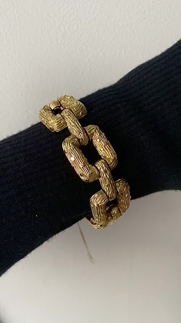 DESCRIPTION FROM ELISA: Super chunky 60s link bracelet! 18k, 76 grams, 7.5" long, 24mm wide, $5295.