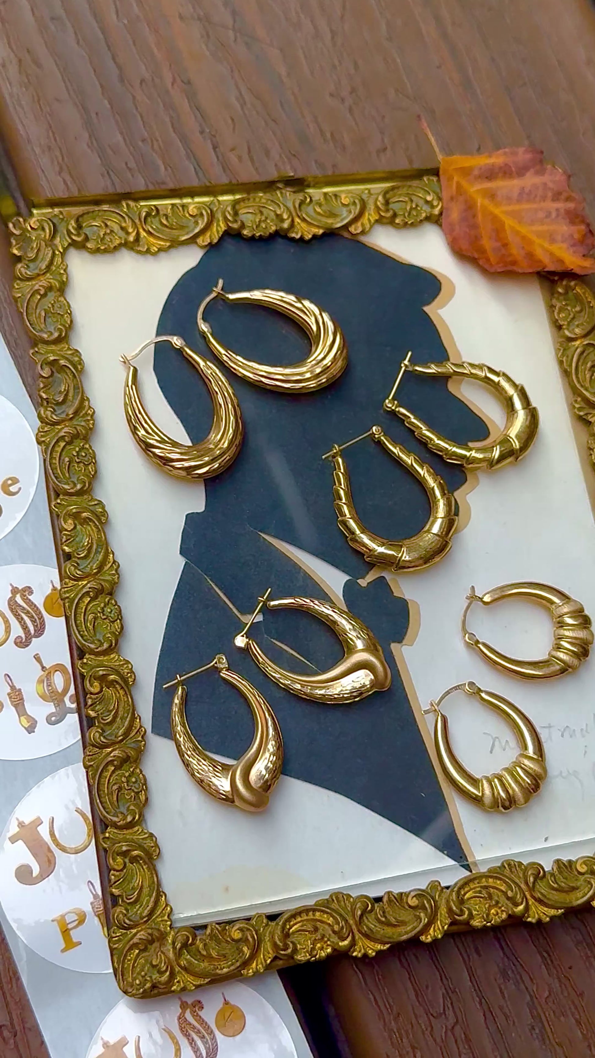 🤫 Puffy vintage hoops with playful shapes and elegant textures ✨ From top to bottom in pic 1: