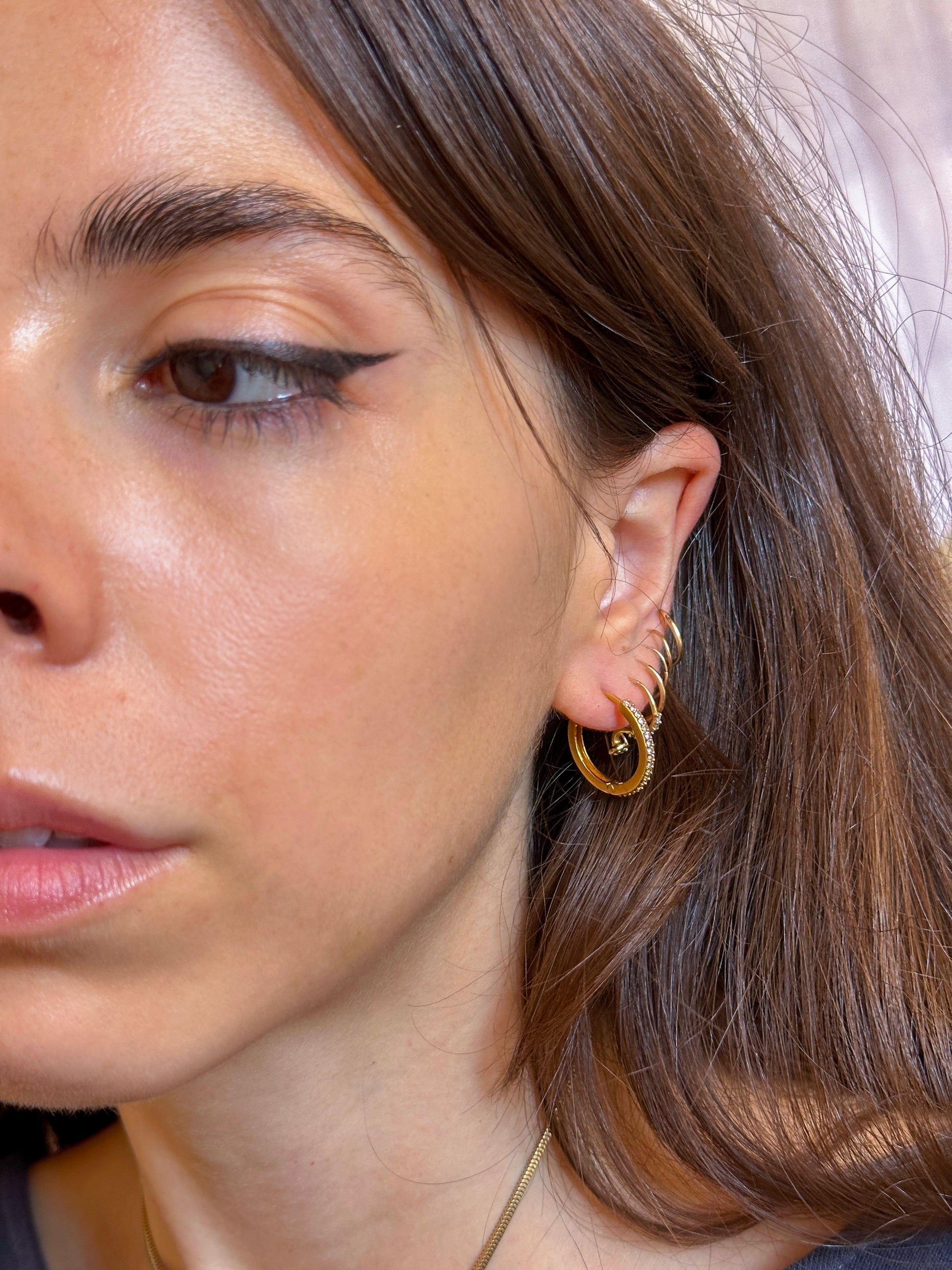 We happened to find ourselves with 5 pairs of fantastic diamond hoops — so this week we’ll drop one pair every weekday morning. All earrings in this mini collection are so unique from each other, I’m sure you guys will want them all! The first to drop now is a simple yet stunning pair of round hoops completely lined in genuine diamonds set in buttery 18k yellow gold. Easy hinged closure, 20mm diameter, 5.8 grams, 18k, $995