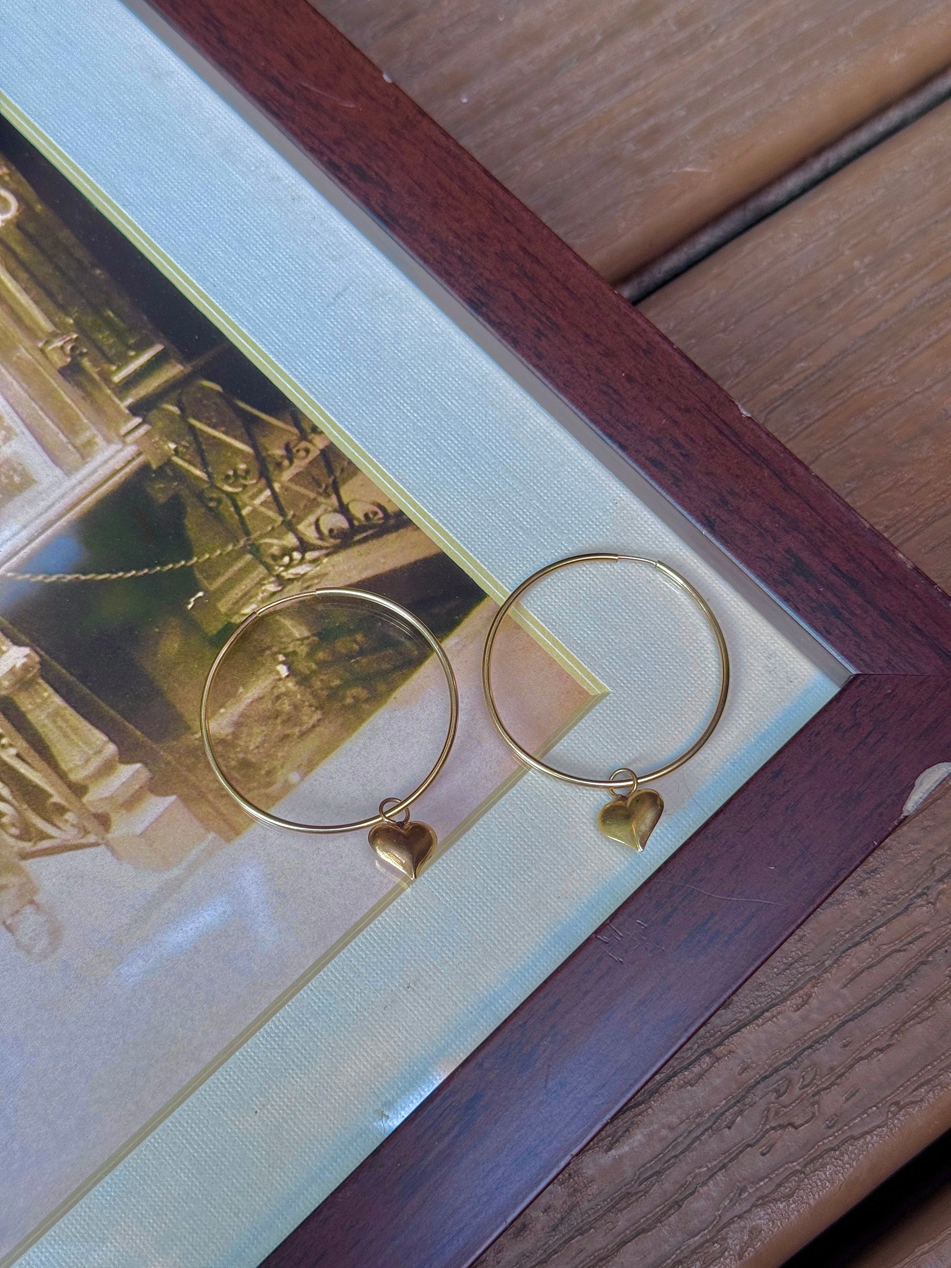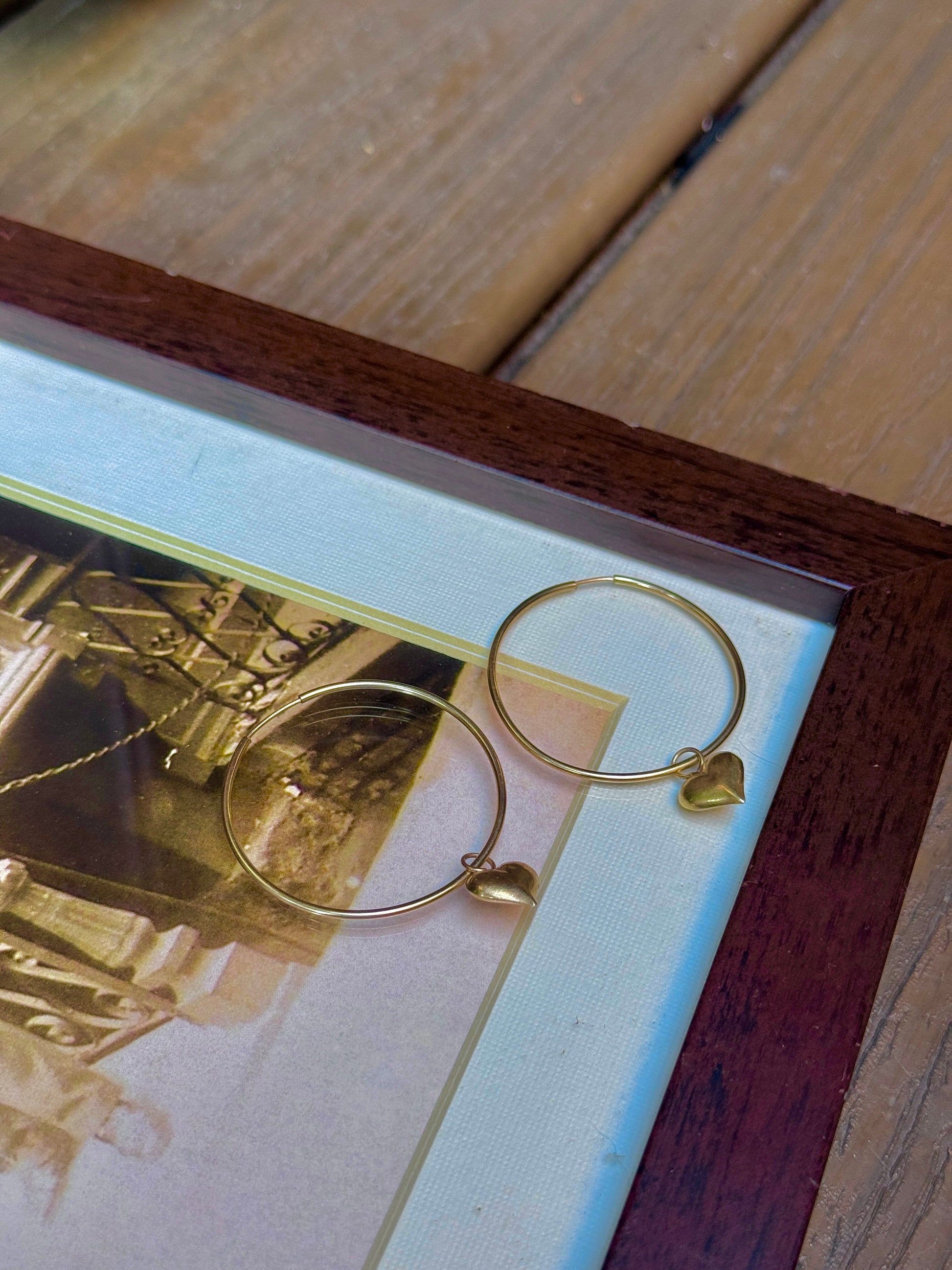 More hoops! This pair is a simple silhouette with heart dangles, aka charms with a front-facing jump ring meant to be added to earrings (this has become super trendy recently!). They make your earrings more versatile, unique, and playful, and I’m sure this pair will be claimed quickly.