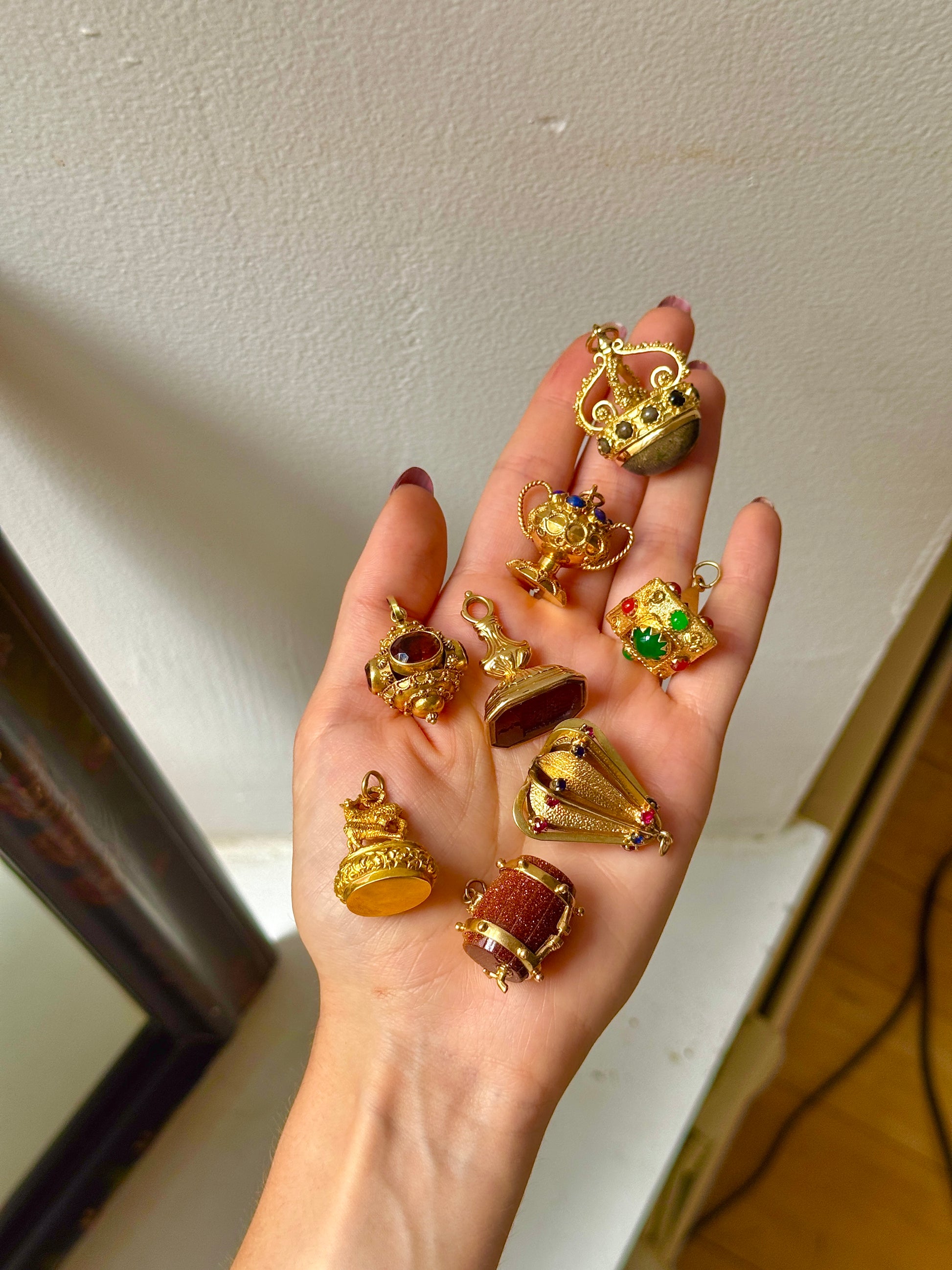 - Stones: a hefty chunk of goldstone handmade set like a wine vault, one of the most unique antique fobs I've ever seen!