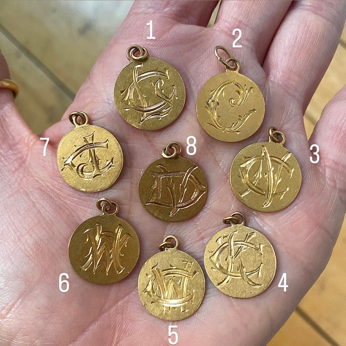 DESCRIPTION FROM ELISA: The best solid 18k Victorian love tokens I've seen! The history of Victorian love tokens is fascinating. Extremely sentimental, they were gifted to loved ones. These came from a charm bracelet, and you can easily surmise from the initials that the family's last name started with a "C."