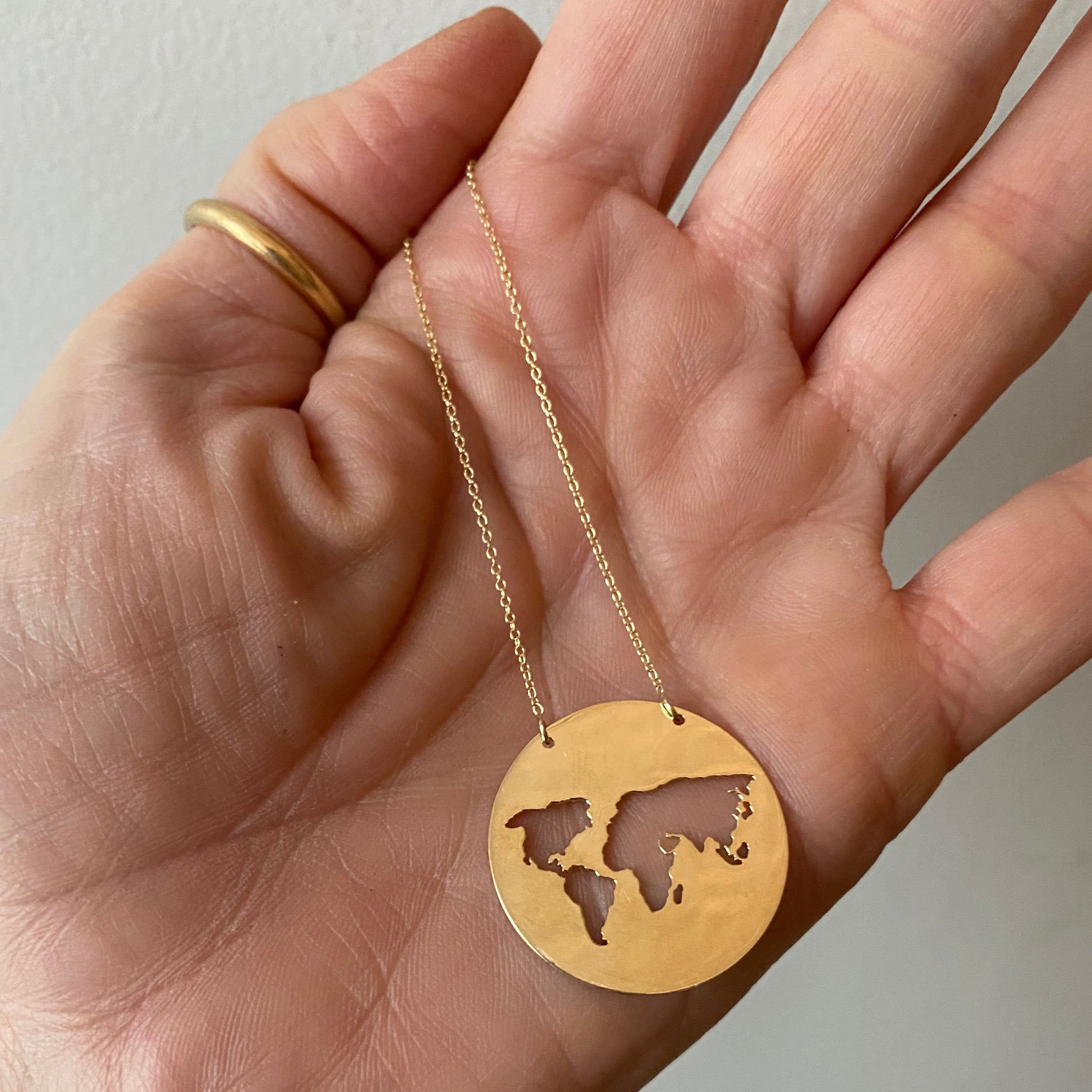 DESCRIPTION FROM ELISA: For those who think globally...I love the artistry and heft of this disc pendant...and the long length of the chain.