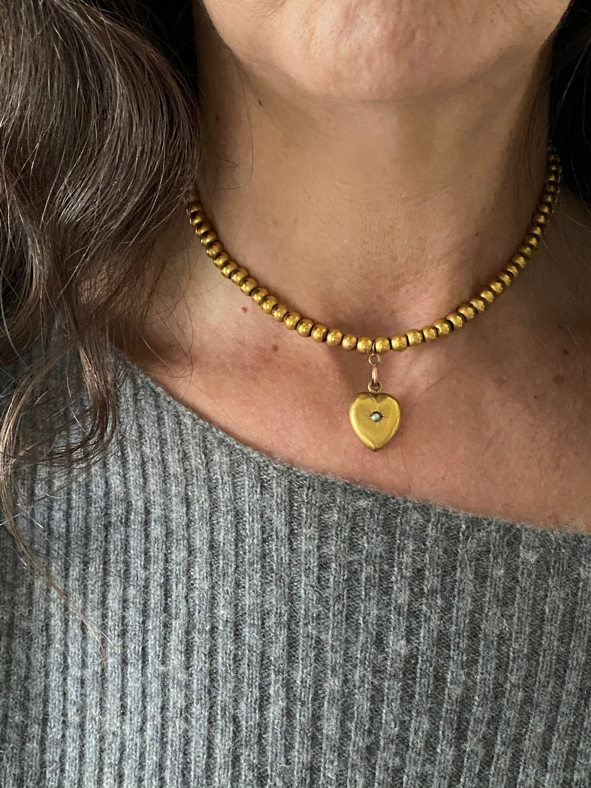 DESCRIPTION FROM ELISA: 18k gold beads...one with a 💛! Beads are in very good condition, hefty and won't dent easily, but there may be a minor flaw or two. Invisible clasps.