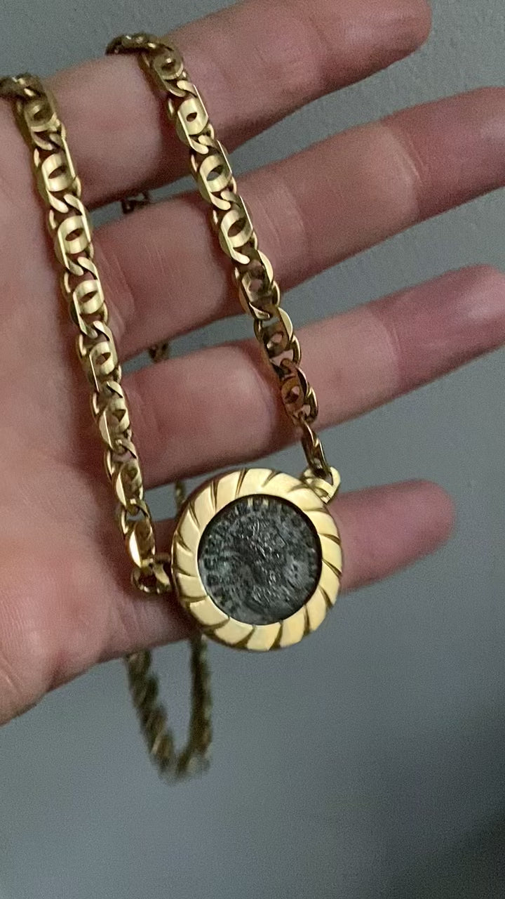 We're so drawn to these ancient Roman coin pieces… I just love the history AND the look. I think the chunky chain and bezel on this one really compliments the coin. Looks great layered...