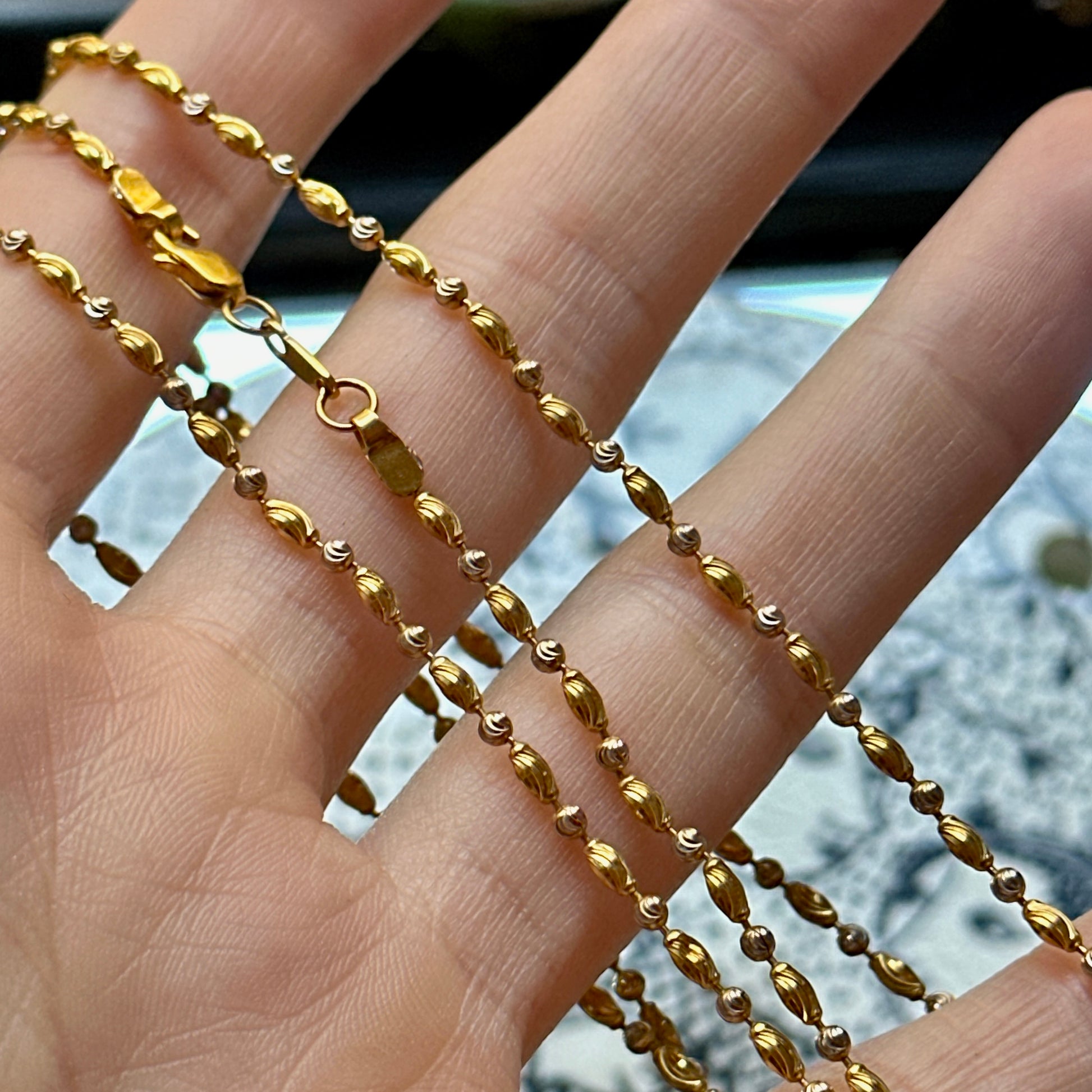 DESCRIPTION FROM ELISA: What a sweet chain to add to any neck mess...this gorgeous necklace is high karat (22k) and has an ornate beaded texture with a subtle dual tone. Grab it quick!