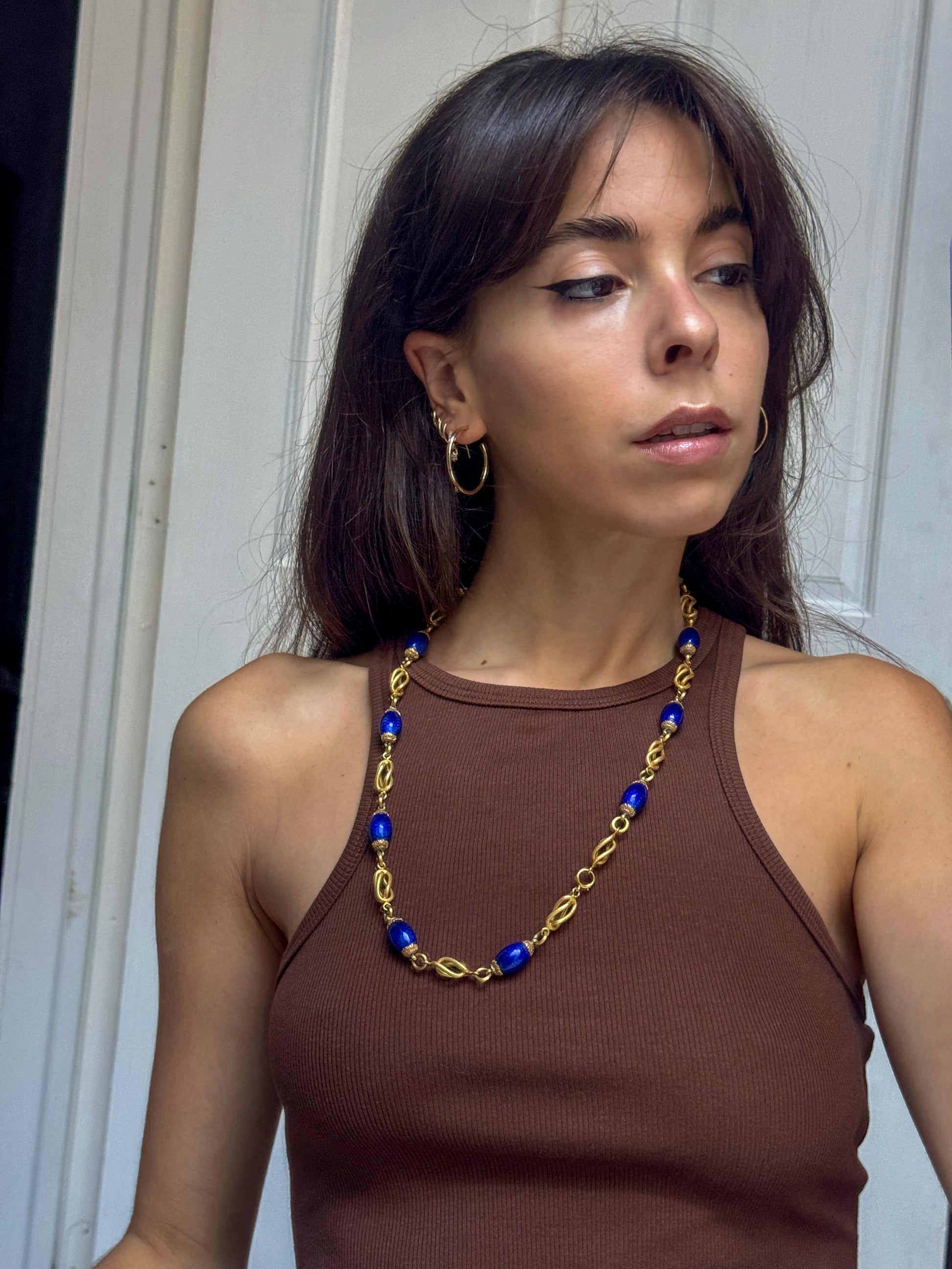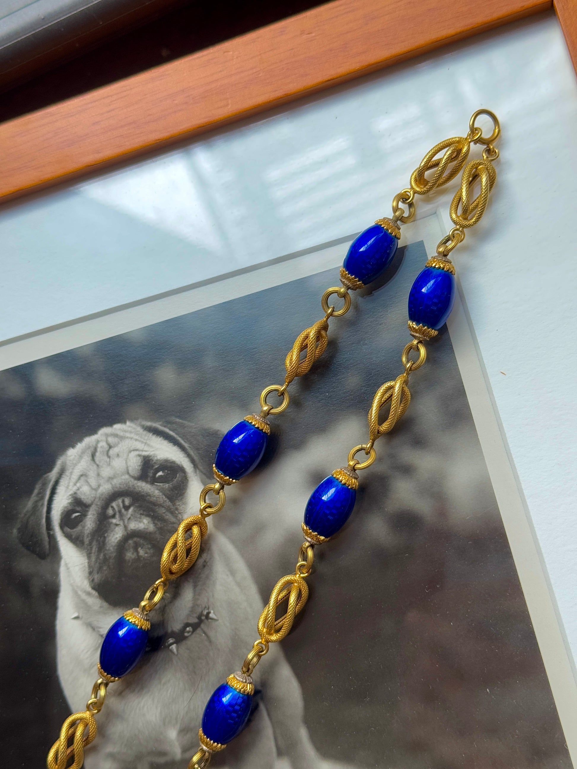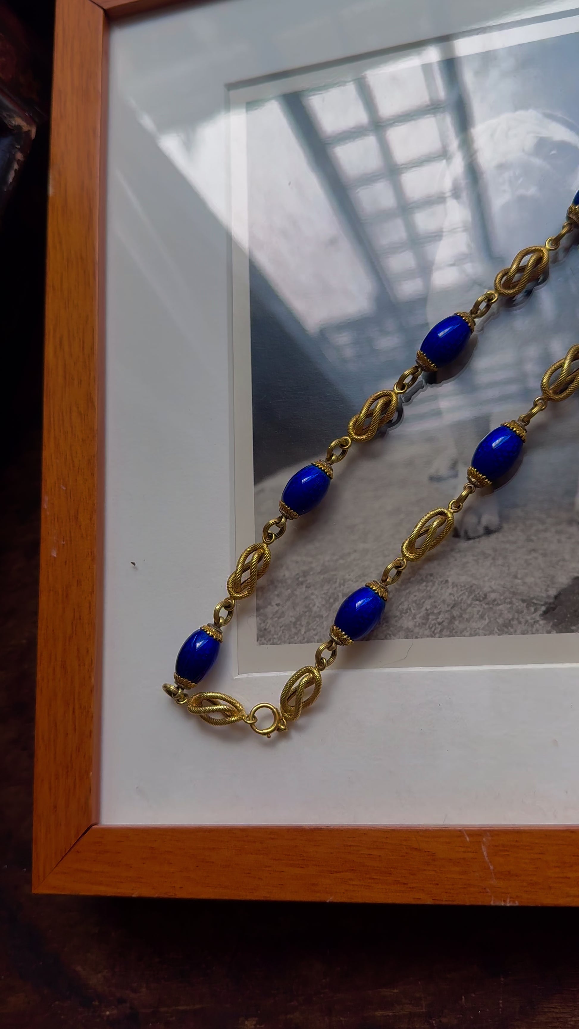 🤫 It doesn’t get much better than this 💙💙💙 Everything about this WEIGHTY antique necklace is massive, from the huge chain to the XL stationed beads of blue blue blue lapis. Each link has a fab texture and spiralling cage silhouette, ending with a classic C clasp. 25 inches, weighs a whopping 83.6 grams of solid 18k yellow gold, priceless but letting it go for $7555