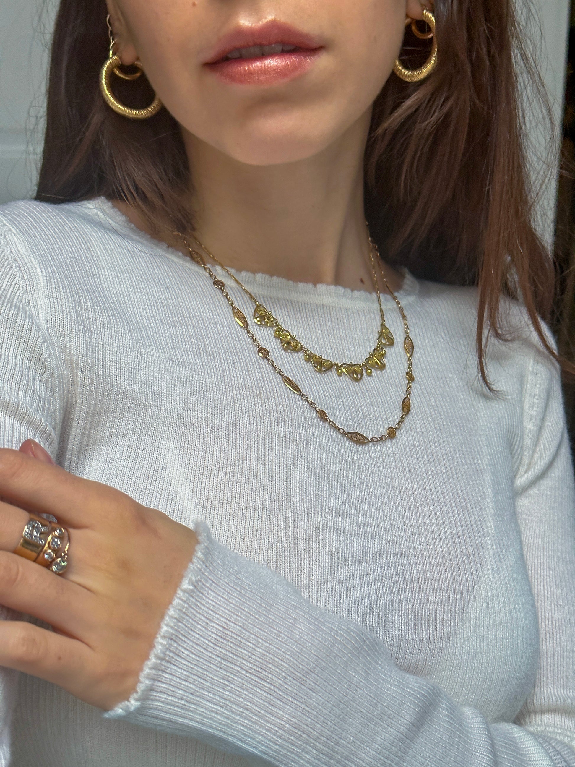 Bonjour! A couple of gorgeous Frenchies, flown in from our Paris dealer. The necklace and chain look fab together!