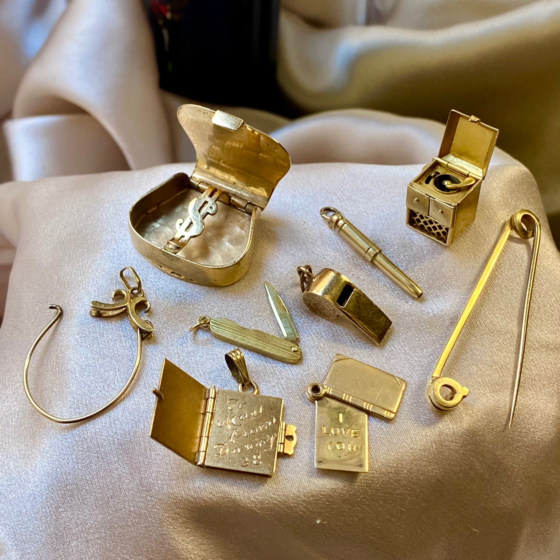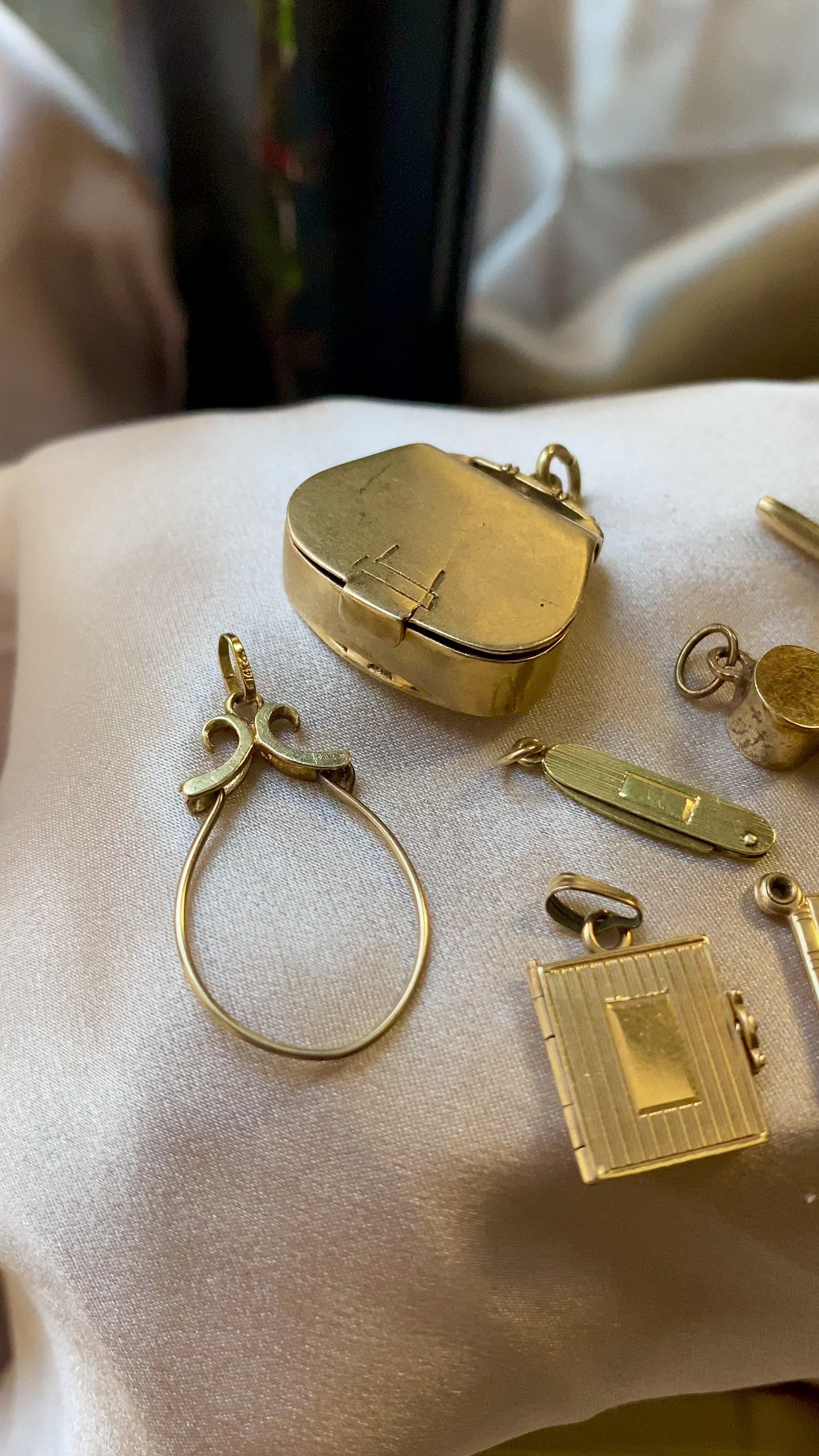DESCRIPTION FROM ELISA: Beautiful charm that looks like a 4-page book. One page is inscribed to Mae love Danny ‘38, others blank. Can be wiped clean.
