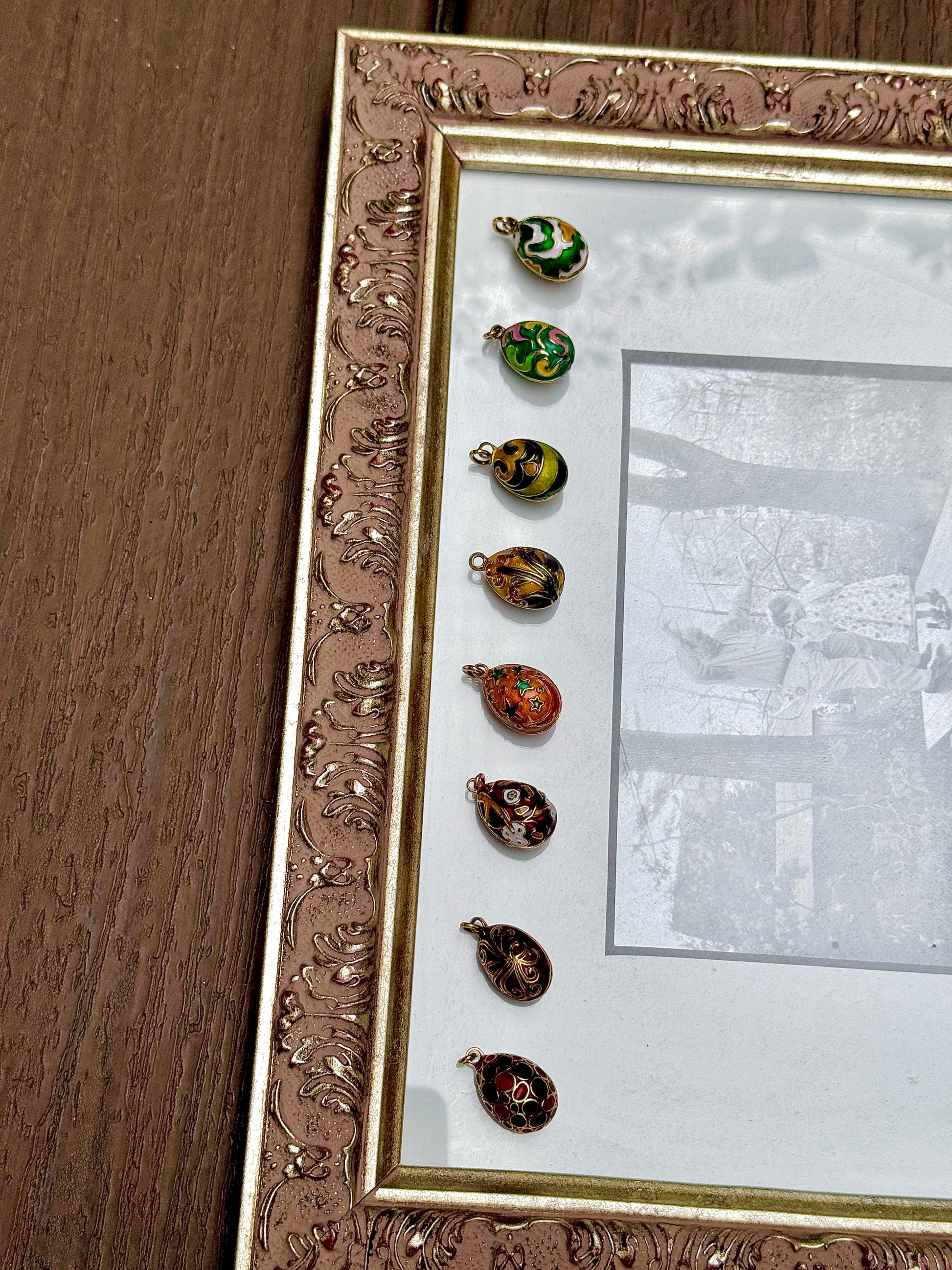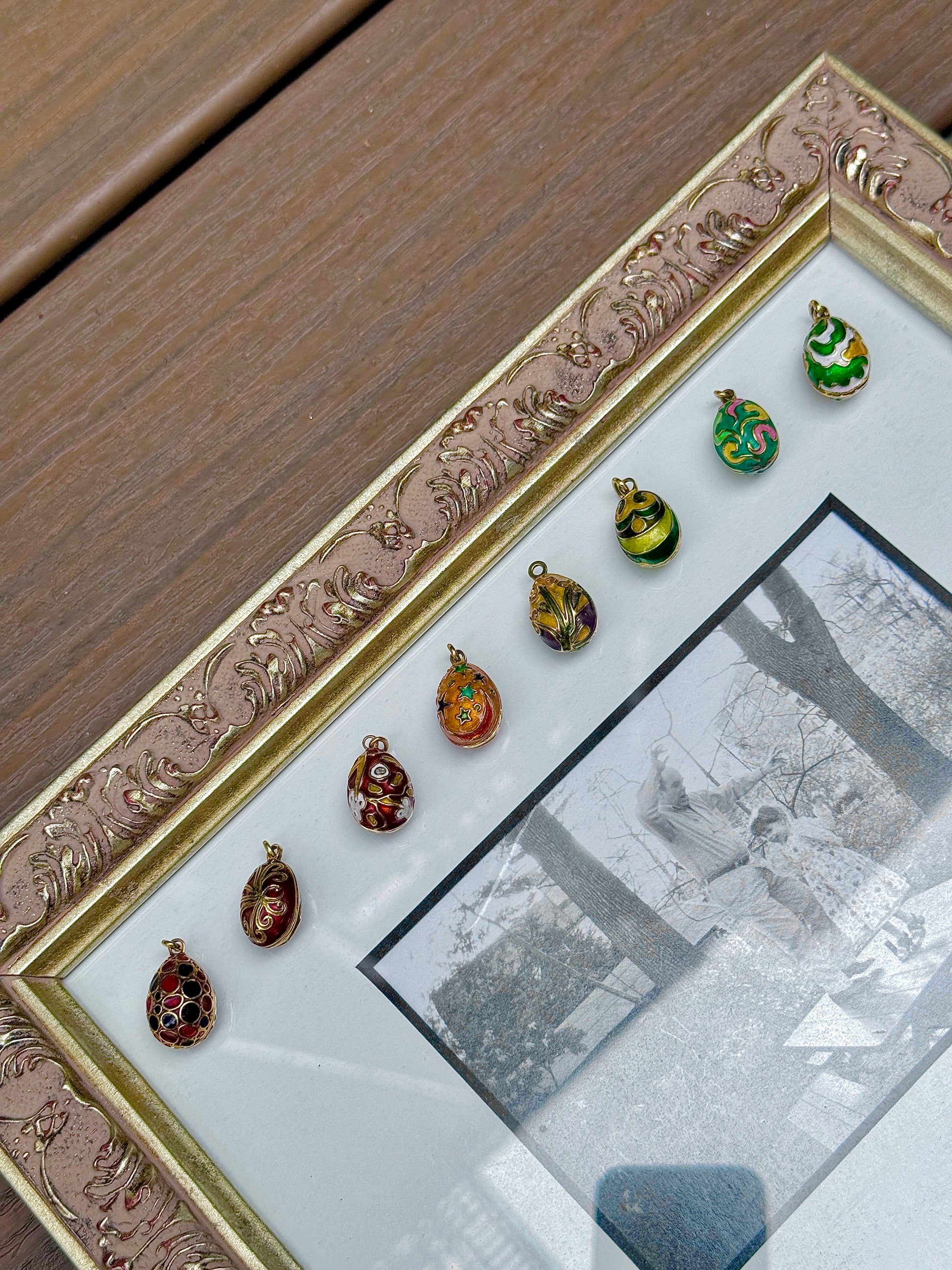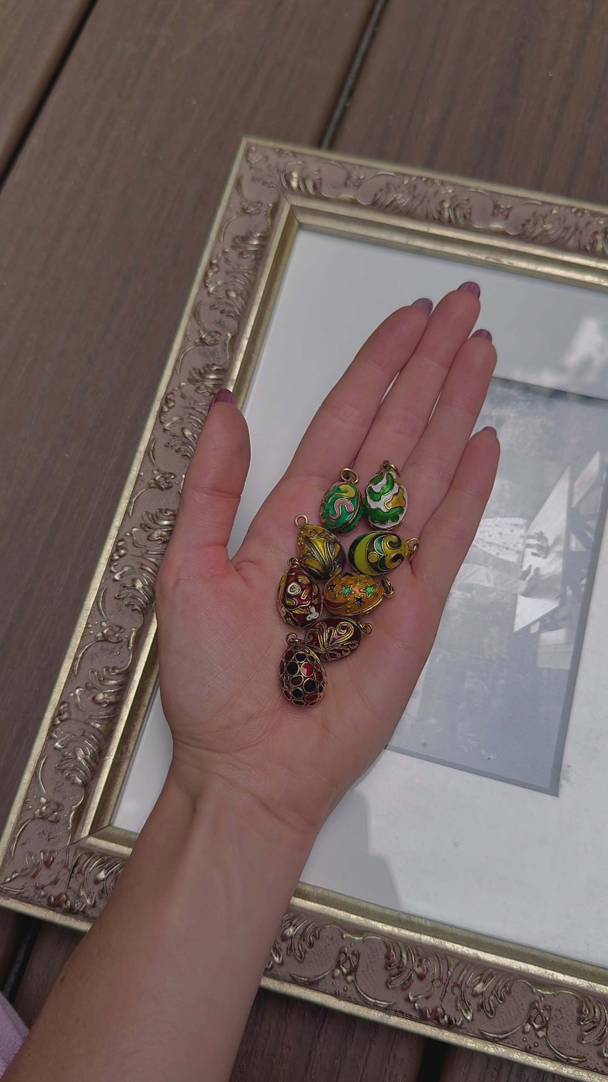 Wanna join the egg gang? Here's a baker's dozen of incredibly beautiful one-of-a-kind Faberge-style enamel eggs! Some have Russian hallmarks, with the maker "SZ" or "SNZ," and all tested to be 18K. Wonderful condition and they look colorful and fun on a neckmess…trust me , I love my egg! A steal for SOLID 18K at $795 each.