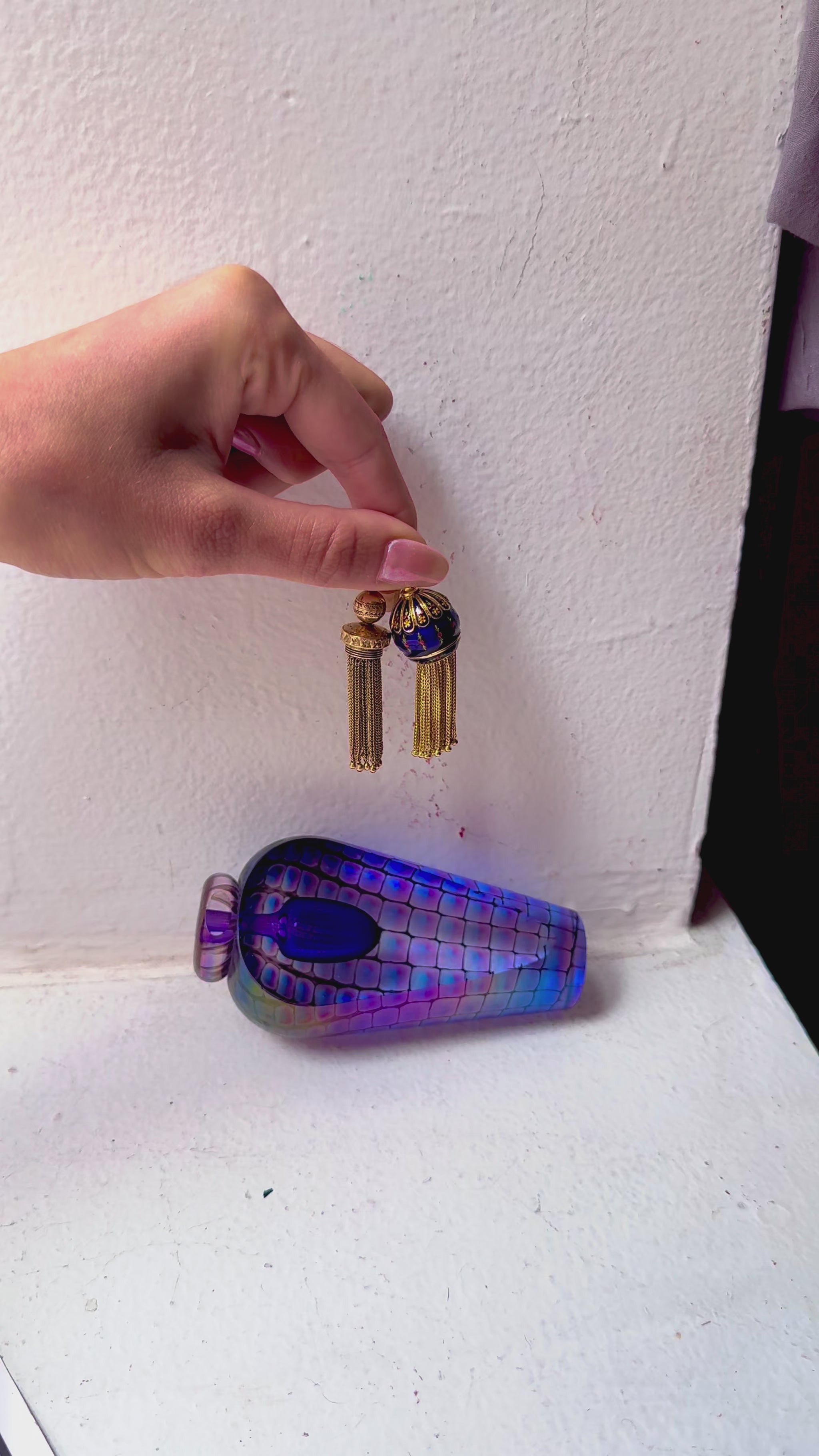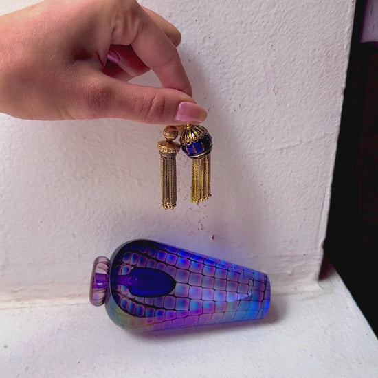 XL BLUE ENAMEL TASSEL CHARM: A serious statement piece with a large enamel top detailed in enamel and TONS of fringe... this one’s heavy, fancy, and rare. 50mm, weighs whopping 25.2 grams of solid 18k!!! $2995
