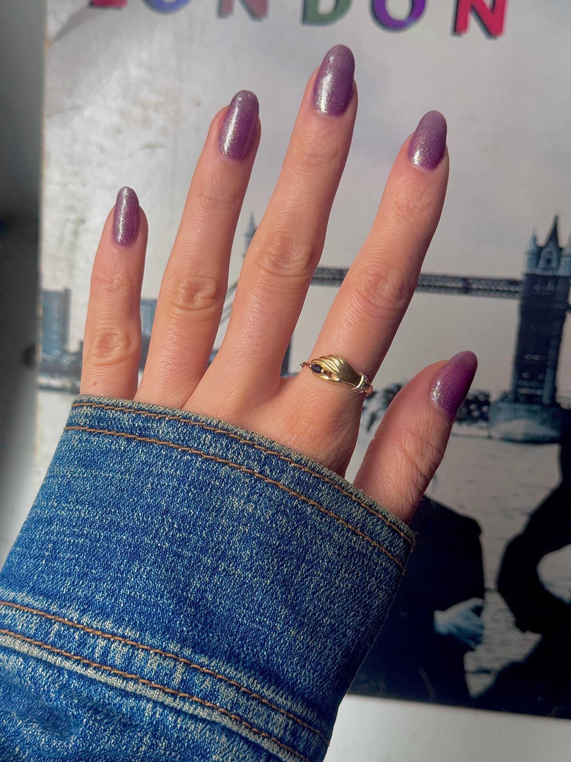 Top right: SOLD Hand holding a sapphire, 14k, 2.1 grams, size 7.25, $685