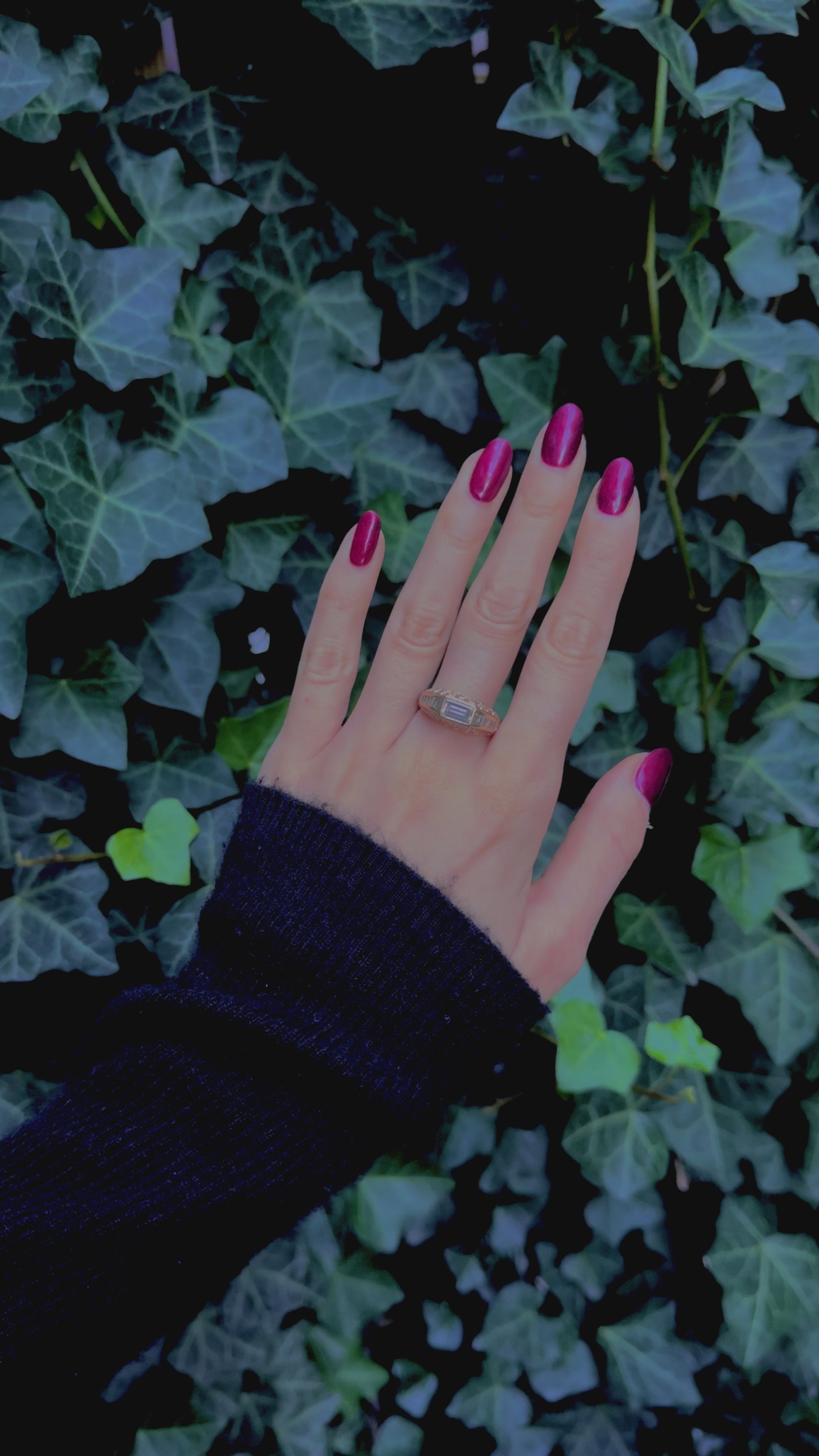 I'm so excited about this ring! If you like emerald cuts, like me, you won't find a nicer one that this .90 carat center diamond: it's clear, white and super sparkly. Every square millimeter of this ring has diamonds: baguettes on the shoulders and lotsa pavé! TCW is 1.5 carats. A wonderful engagement ring, or just showcase it in your everyday rotation!