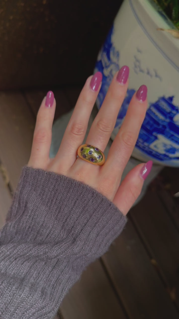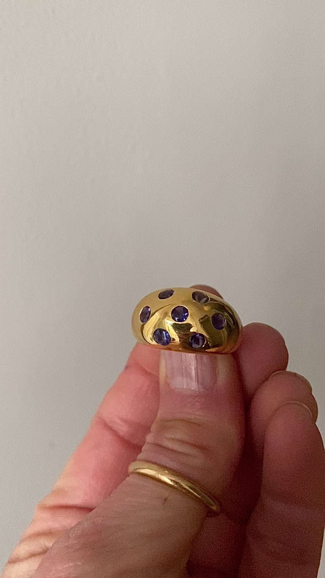 Sprinkled with natural sapphires, French, and gorgeous! Set in 18k gold.