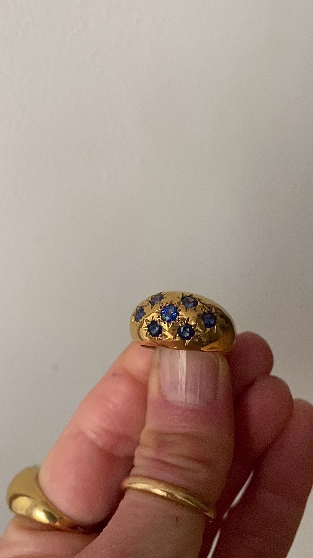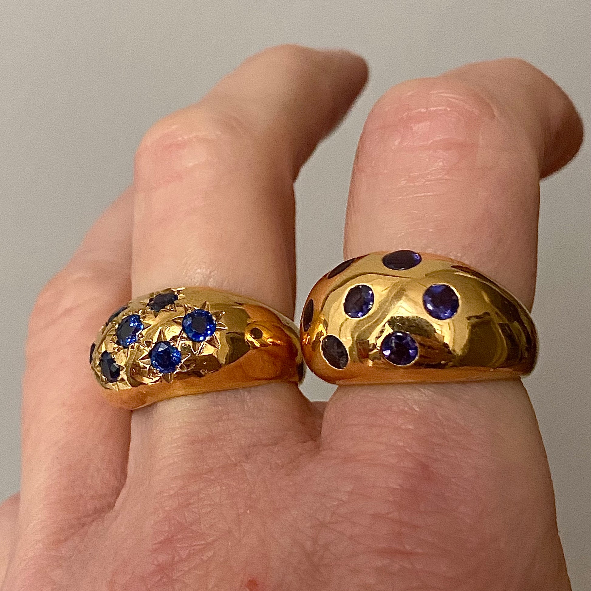 DESCRIPTION FROM ELISA: Stars or sprinkles? Both are French, and gorgeous, with natural sapphires set in 18k gold. This one is for the left ring with stars!