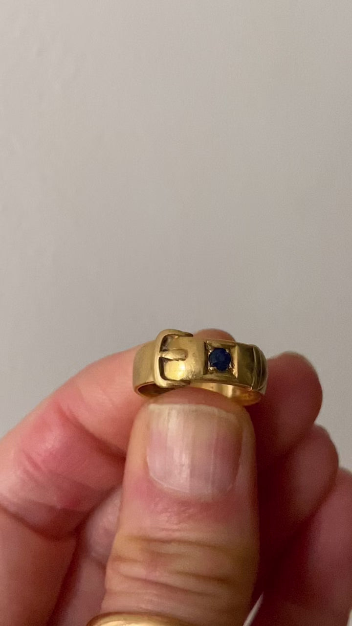 DESCRIPTION FROM ELISA: This buckle ring (pictured on the bottom) is a classic...I have a small collection of them! This one has crisp detail and a gorgeous sapphire.