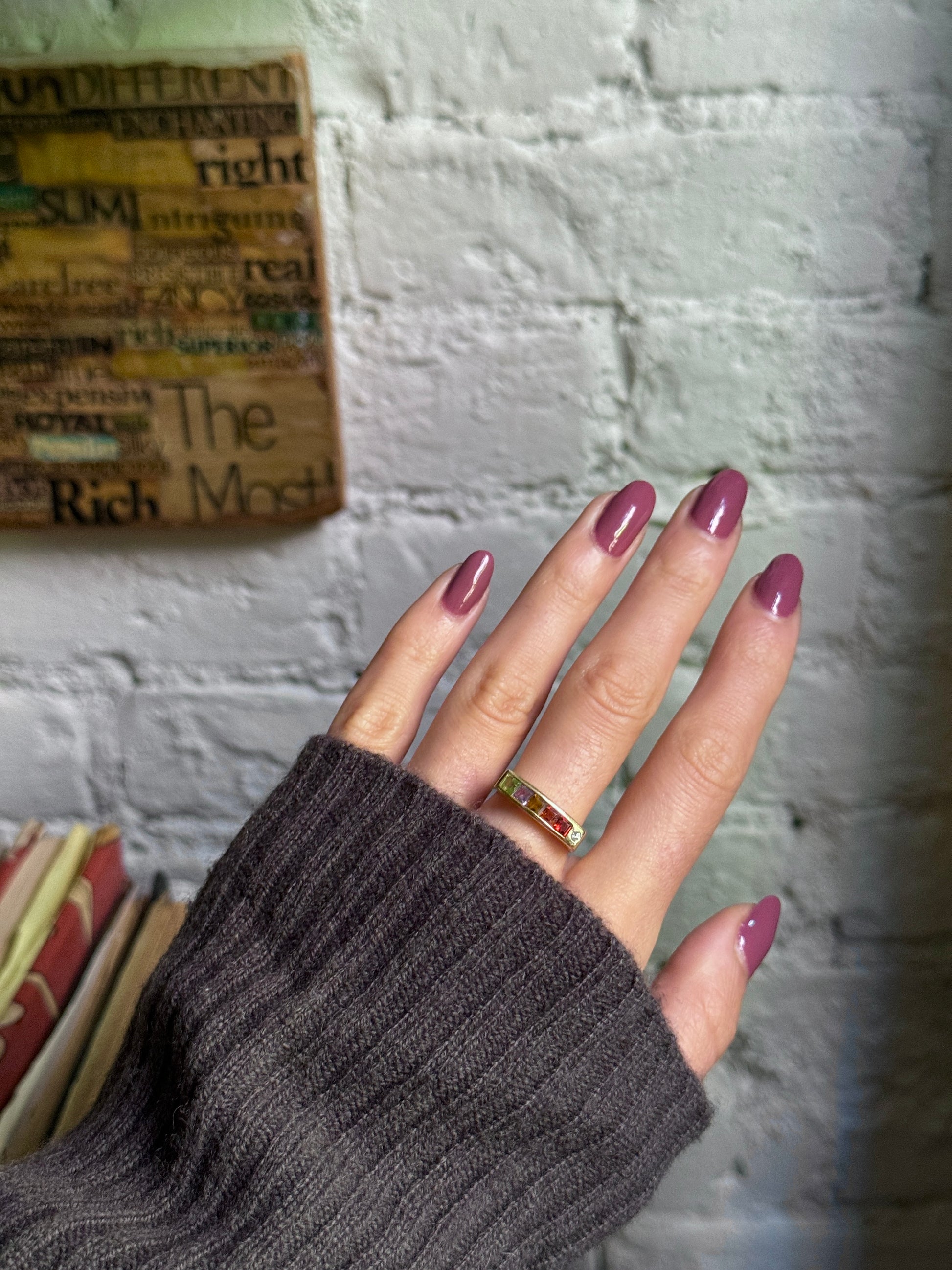 🌈 Ready for a rainbow on your finger? This geometric ring features every colour of semi-precious stones (and a diamond!)