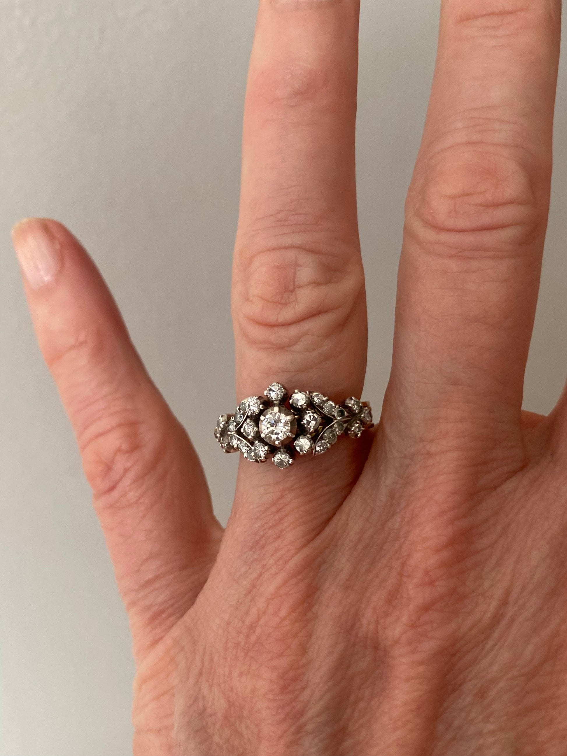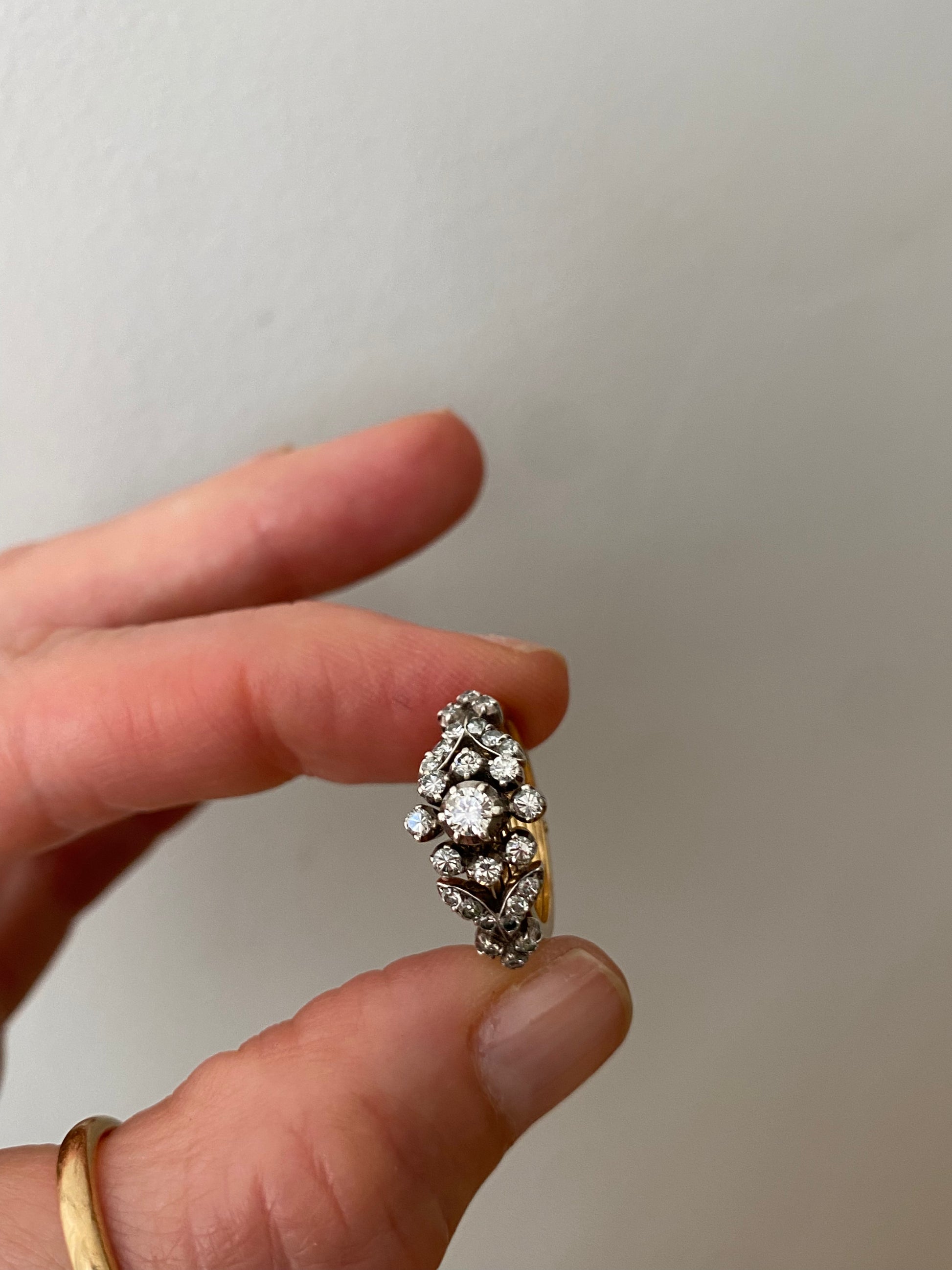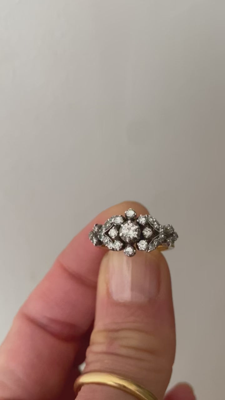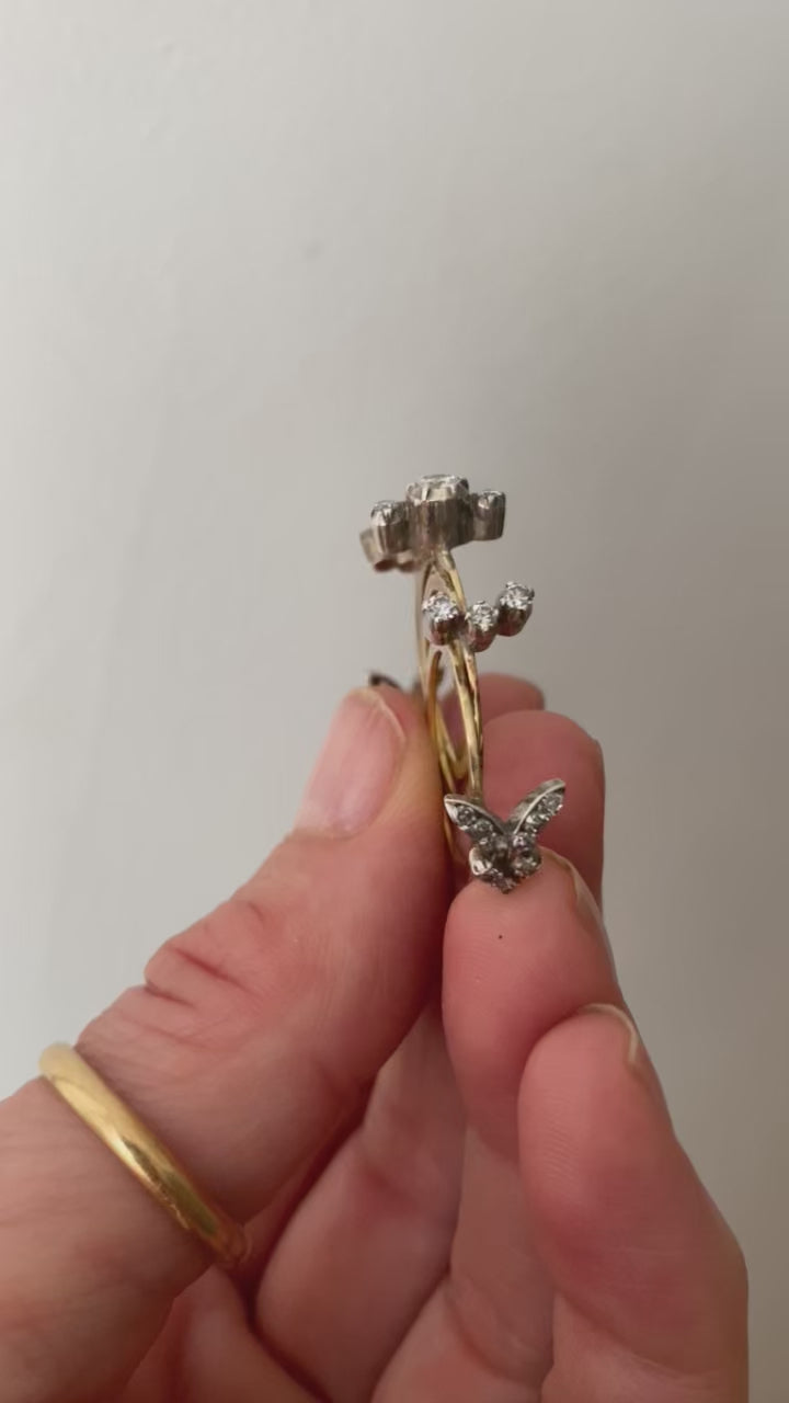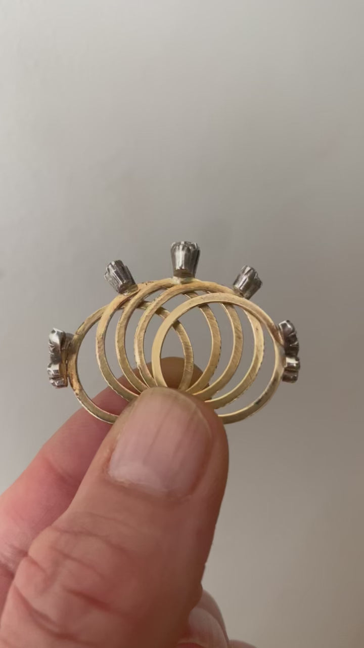 We nearly fainted when our Portuguese dealer offered us this 19th century gimmel ring in its original box. As you can see, it has 5 separate bands with a hinge that allows the ring to open and when closed, it forms a flower 🌼 Extremely rare... I've only seen one on the internet that's similar and it's selling for over $20k! Portuguese in origin, so .75 carats of clear, white diamonds are set in 19k. Box included.