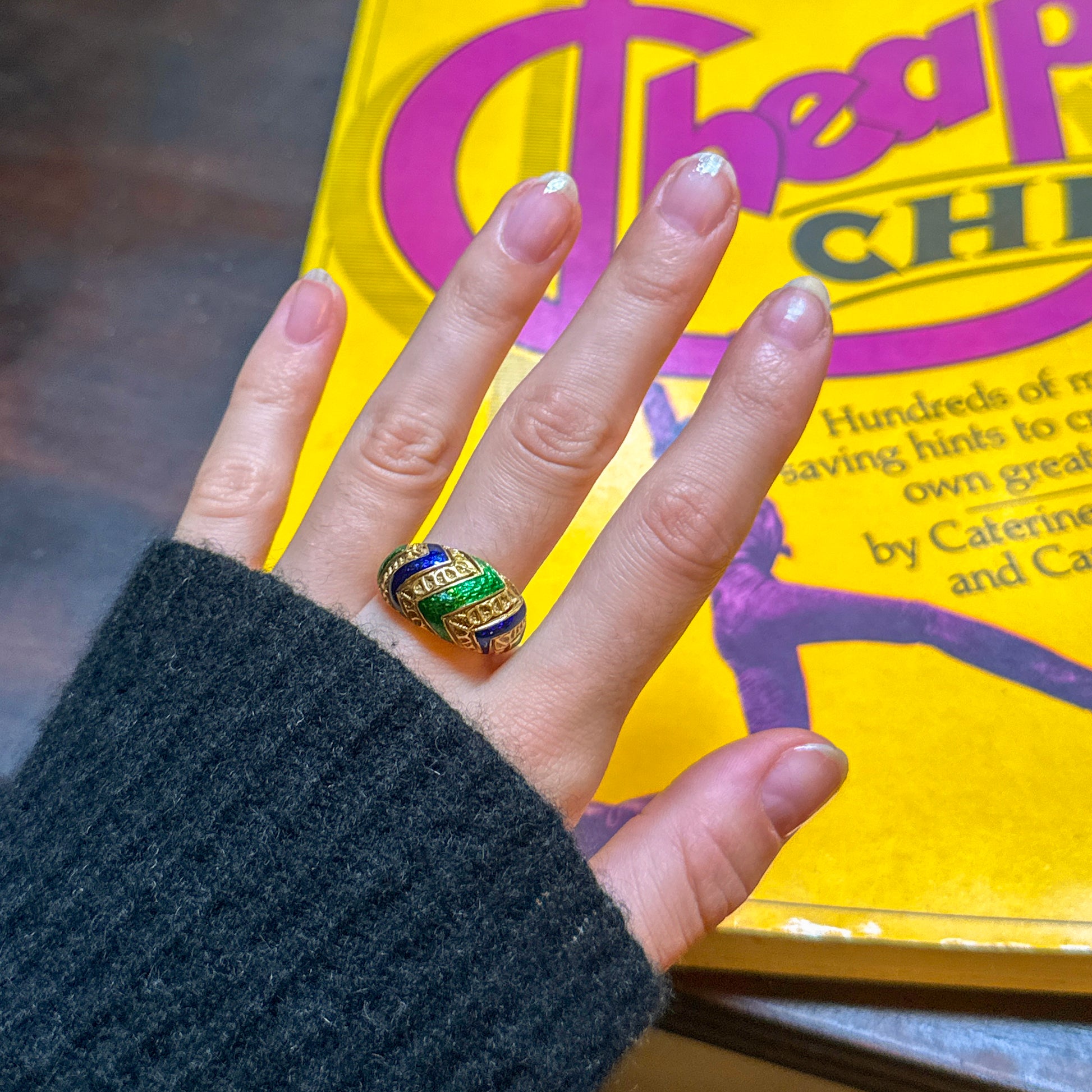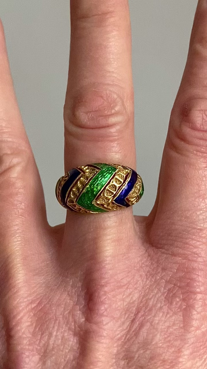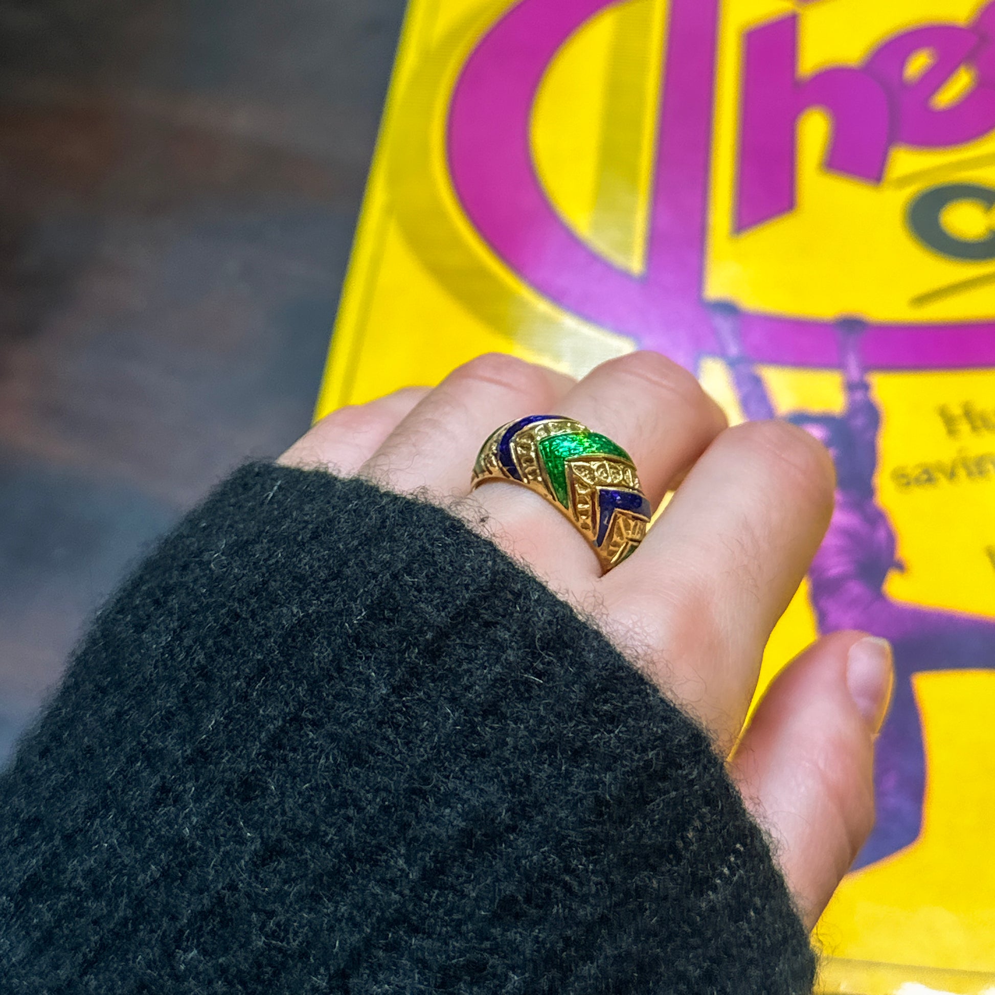 DESCRIPTION FROM ELISA: 1960s 18k and enamel ring!