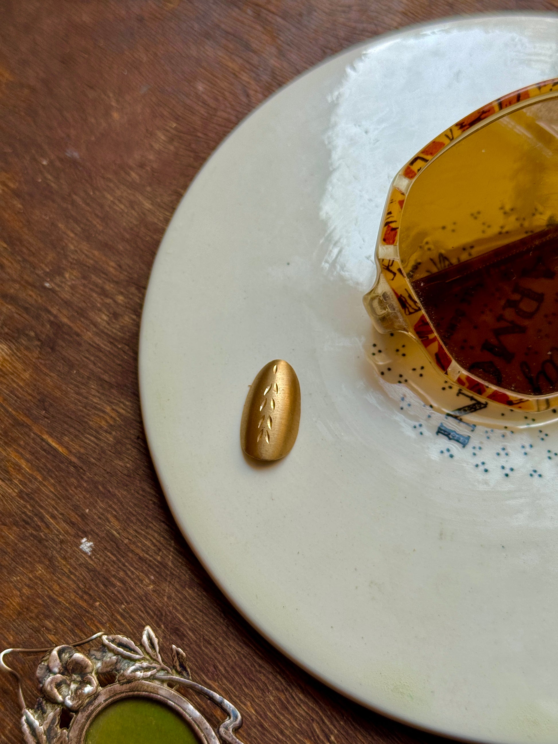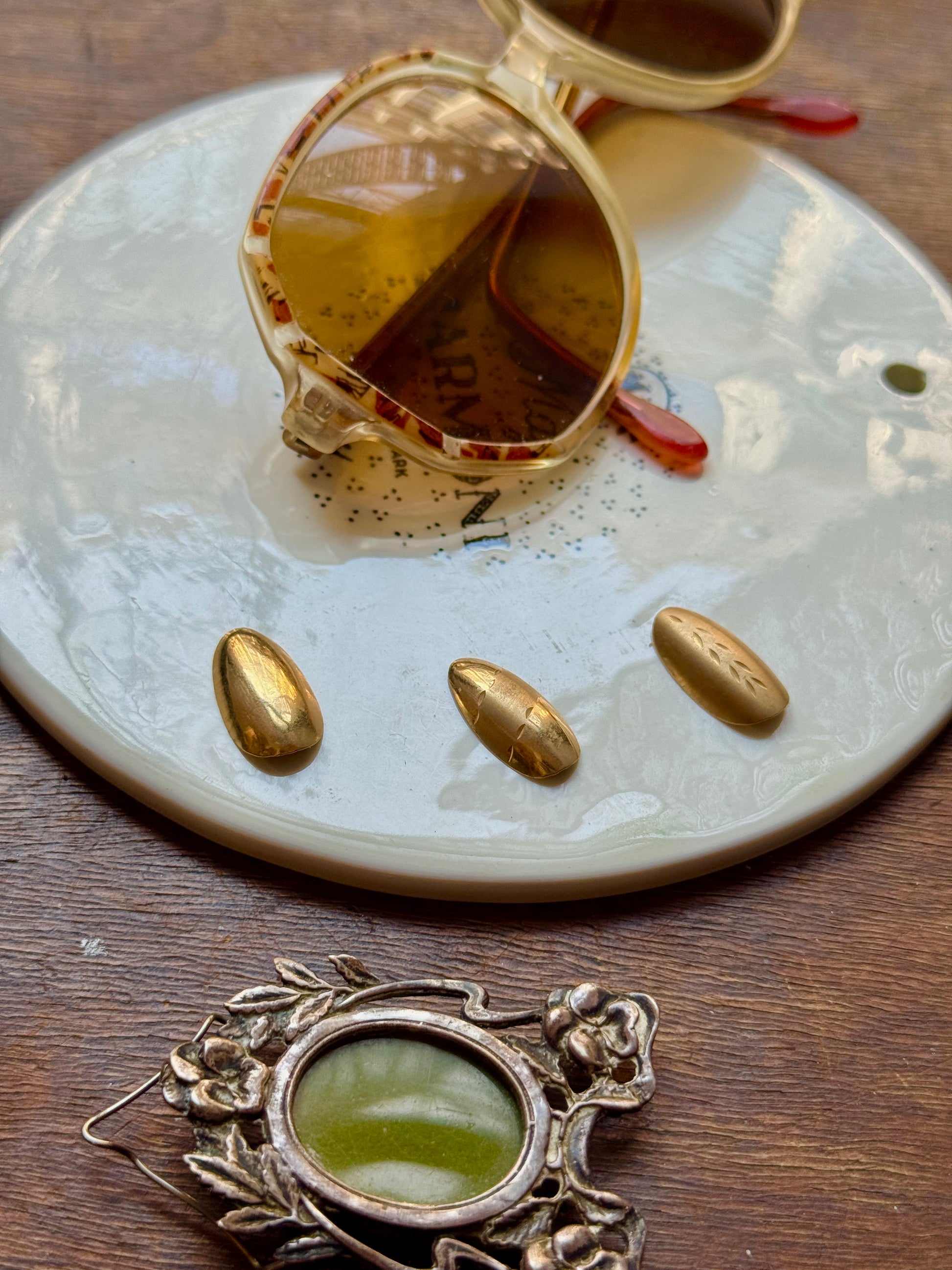 We sourced a stunning vintage collection of solid gold nails— each nice heavy and solid. Add one to your pinky! It's quite the party trick... Either polished, Engraved diagonally, or engraved arrow.